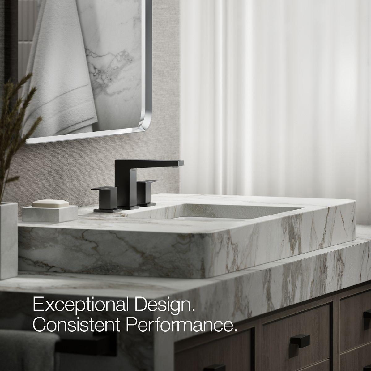 With clean lines and square features, the contemporary Honesty widespread faucet draws inspiration from modern European design. This low-flow 0.5-gpm faucet has a sleek look to create a clutter-free, easy-to-clean bathroom atmosphere.