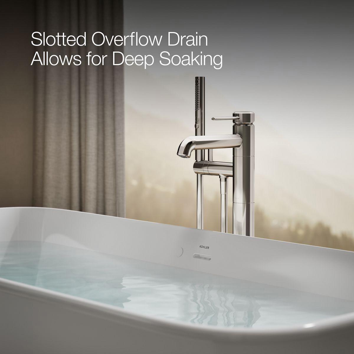 - Slotted overflow allows for deep soaking.