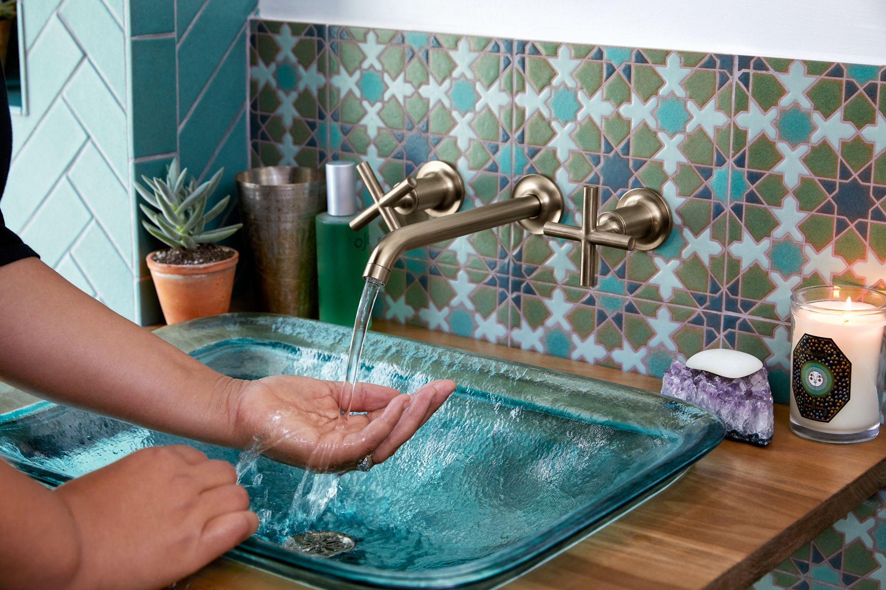 Made by American craftsmen using stunning pressed-glass construction, the Inia Wading Pool sink creates a soothing focal point in any bathroom or powder room. Its deep, generously sized basin helps minimize splashing, and the glass surface cleans up easily. The subtle hammered texture helps to conceal vanity items and fixtures from view.