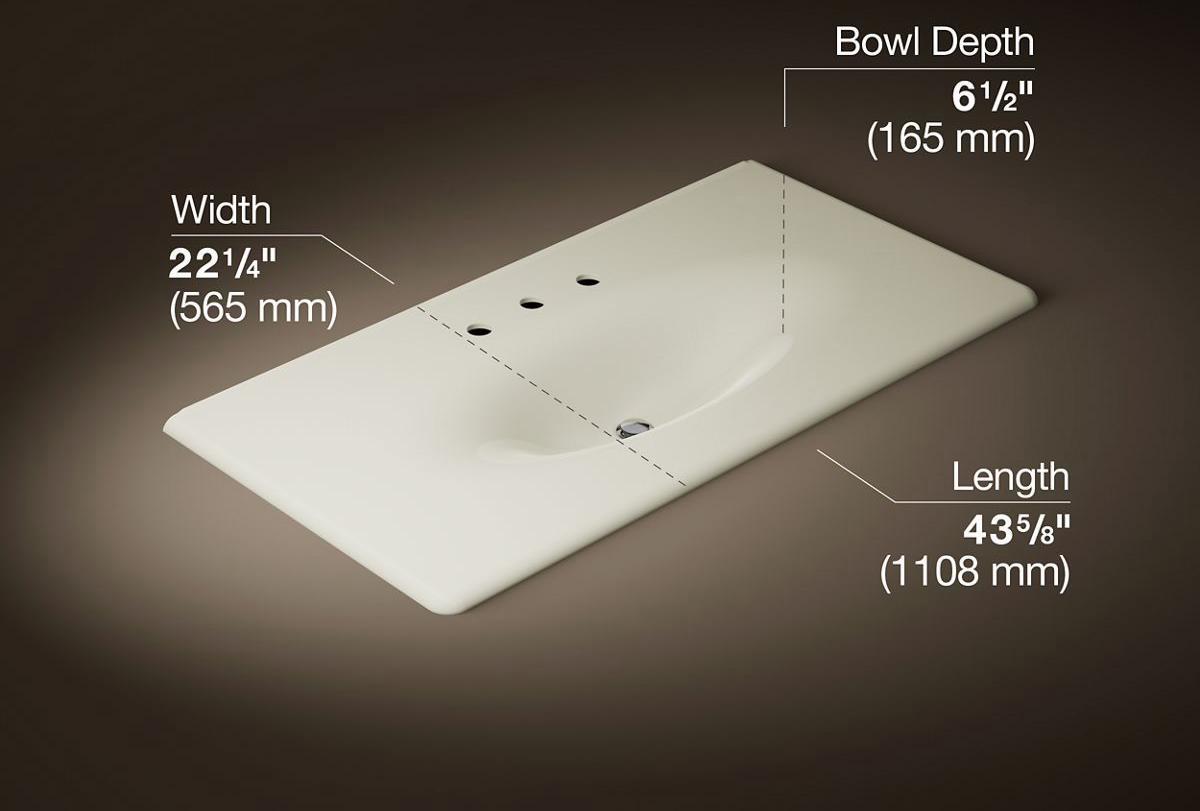 - Combines with standard 42" (1067 mm) vanities to create a complete sink.