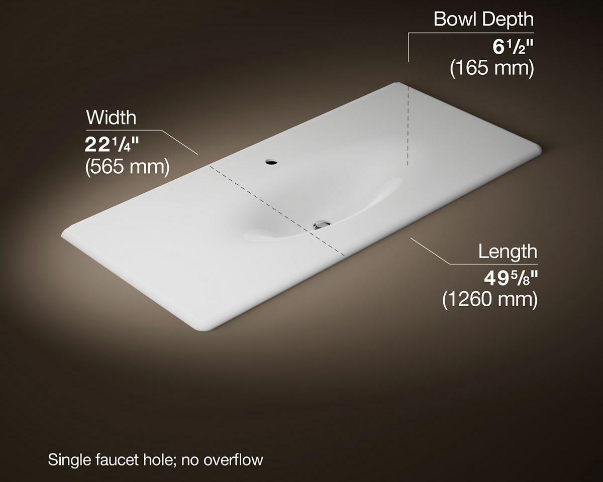 - Combines with standard 48" (1219 mm) vanities to create a complete sink.