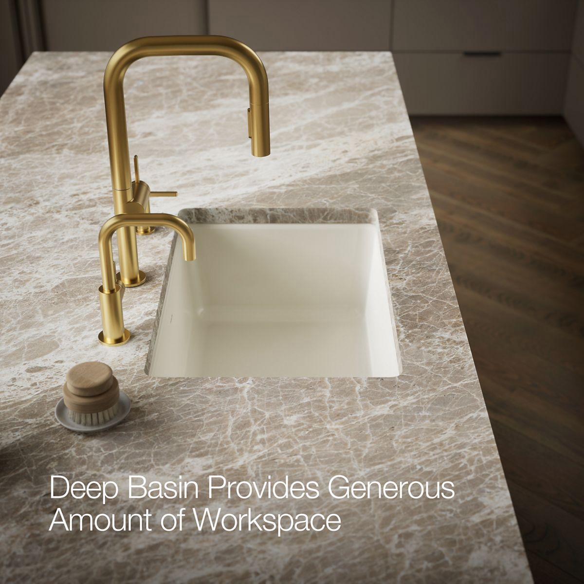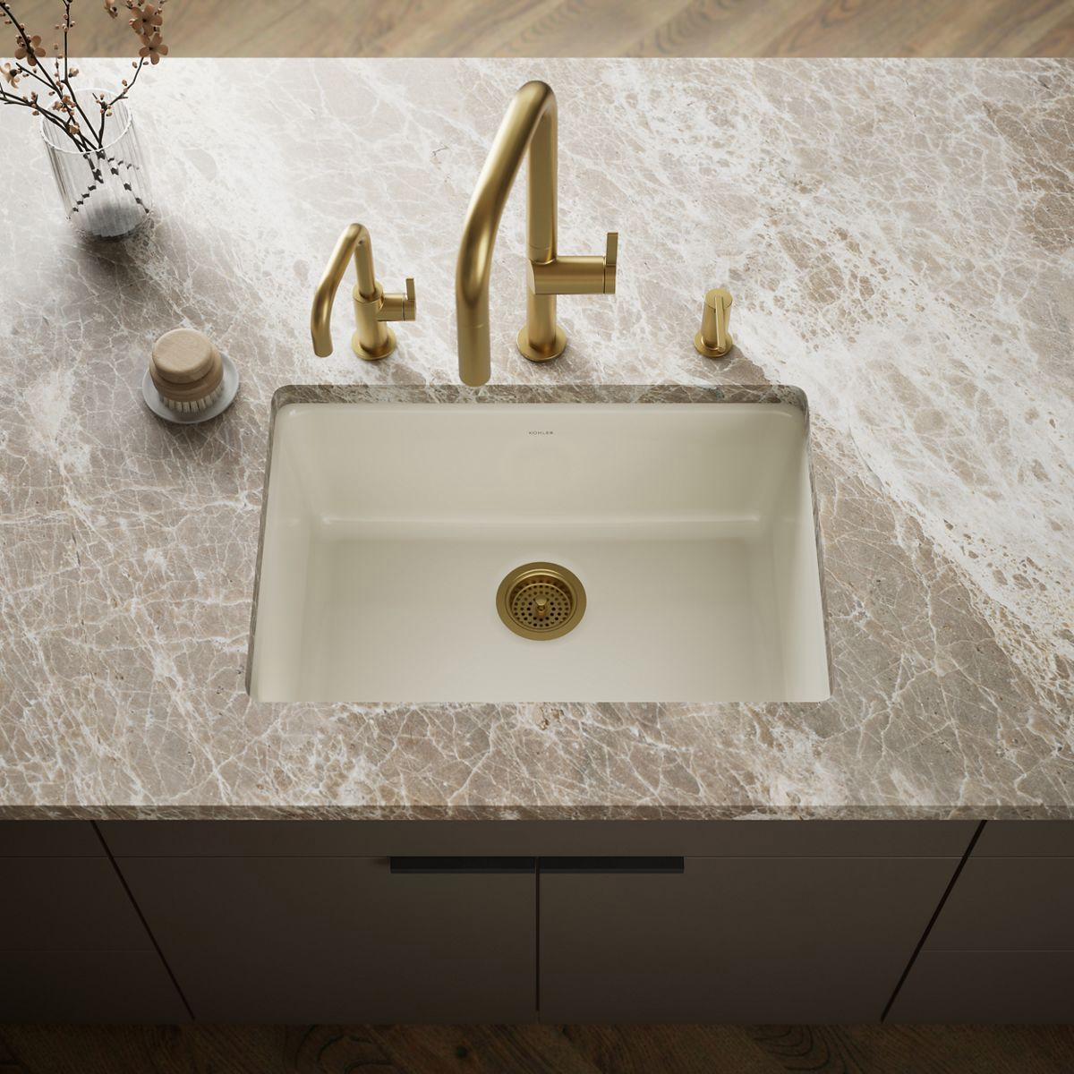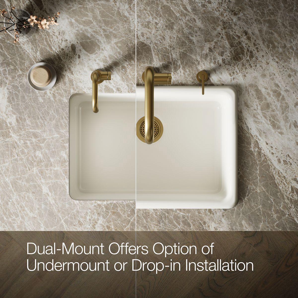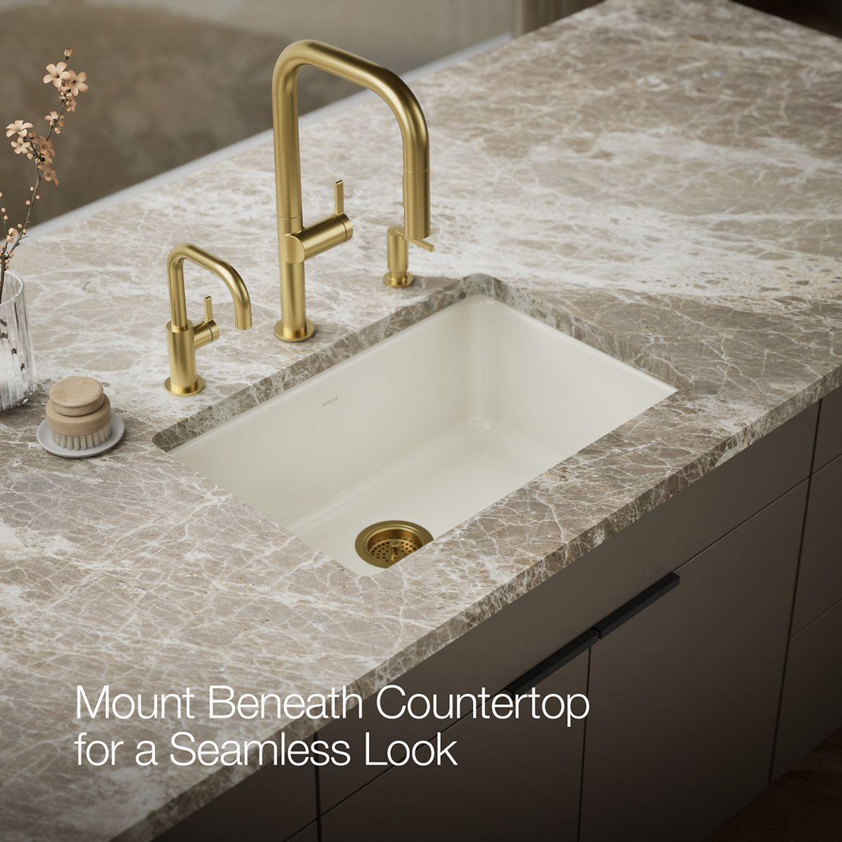 The Iron/Tones sink offers a simple design that is equally at home in modern or traditional kitchens. The single basin offers generous space for large cookware. Crafted from enameled cast iron, this sink resists chipping, cracking, and burning for years of beauty and reliable performance.
