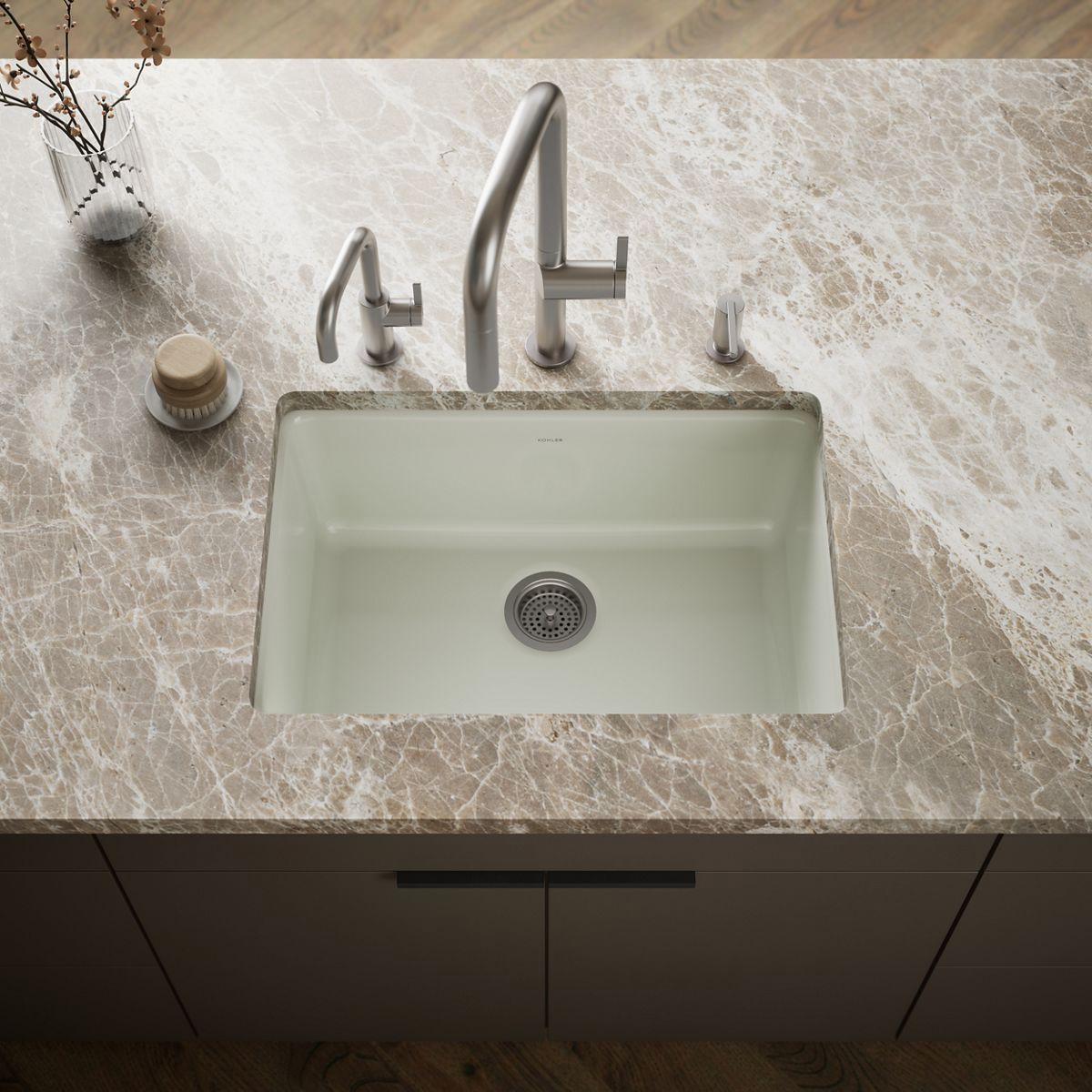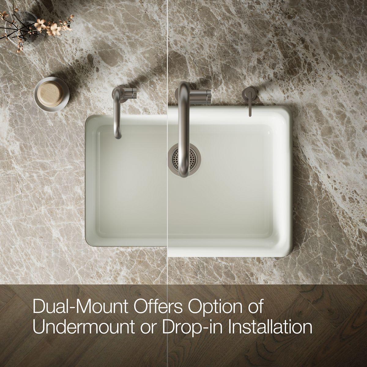 The Iron/Tones sink offers a simple design that is equally at home in modern or traditional kitchens. The single basin offers generous space for large cookware. Crafted from enameled cast iron, this sink resists chipping, cracking, and burning for years of beauty and reliable performance.