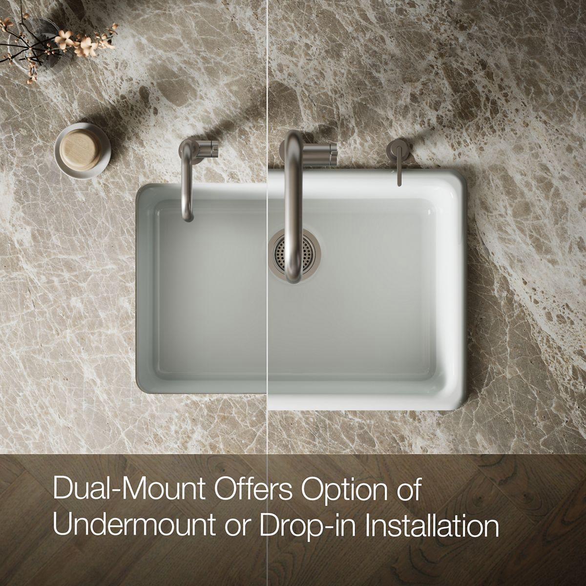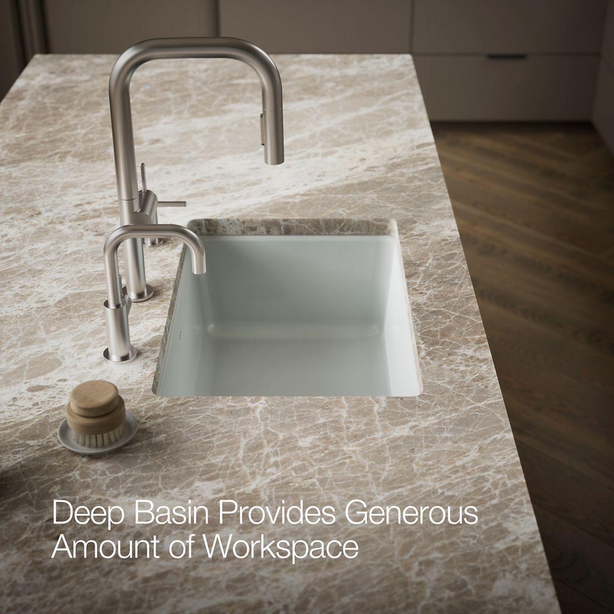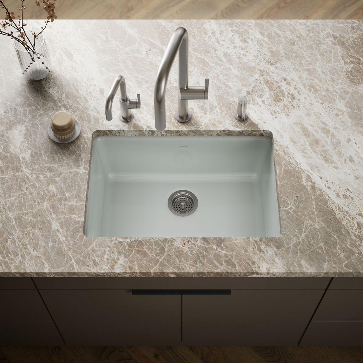 The Iron/Tones sink offers a simple design that is equally at home in modern or traditional kitchens. The single basin offers generous space for large cookware. Crafted from enameled cast iron, this sink resists chipping, cracking, and burning for years of beauty and reliable performance.