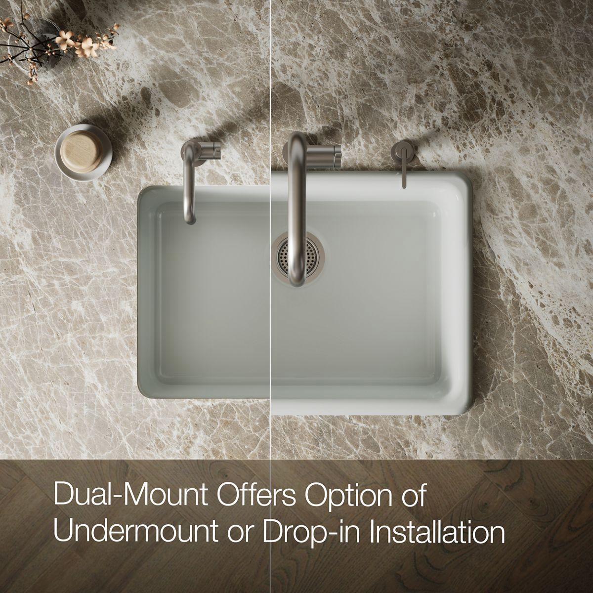The Iron/Tones sink offers a simple design that is equally at home in modern or traditional kitchens. The single basin offers generous space for large cookware. Crafted from enameled cast iron, this sink resists chipping, cracking, and burning for years of beauty and reliable performance.