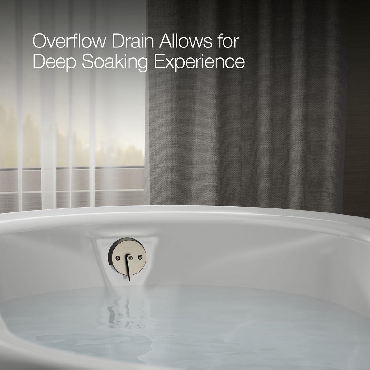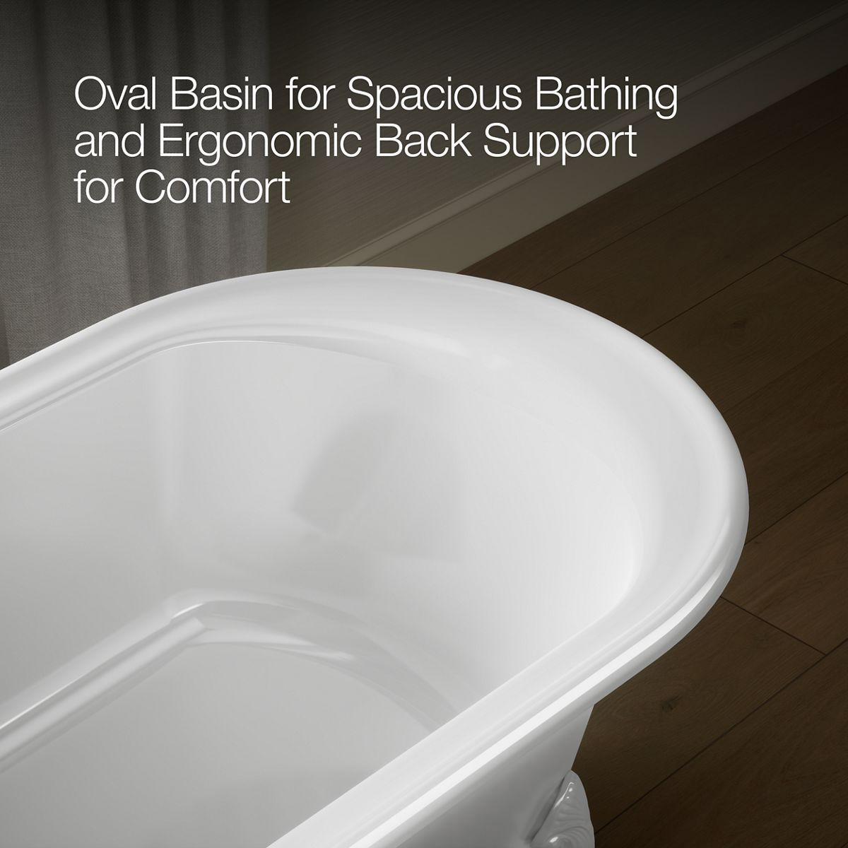 - Oval basin creates a spacious bathing experience.