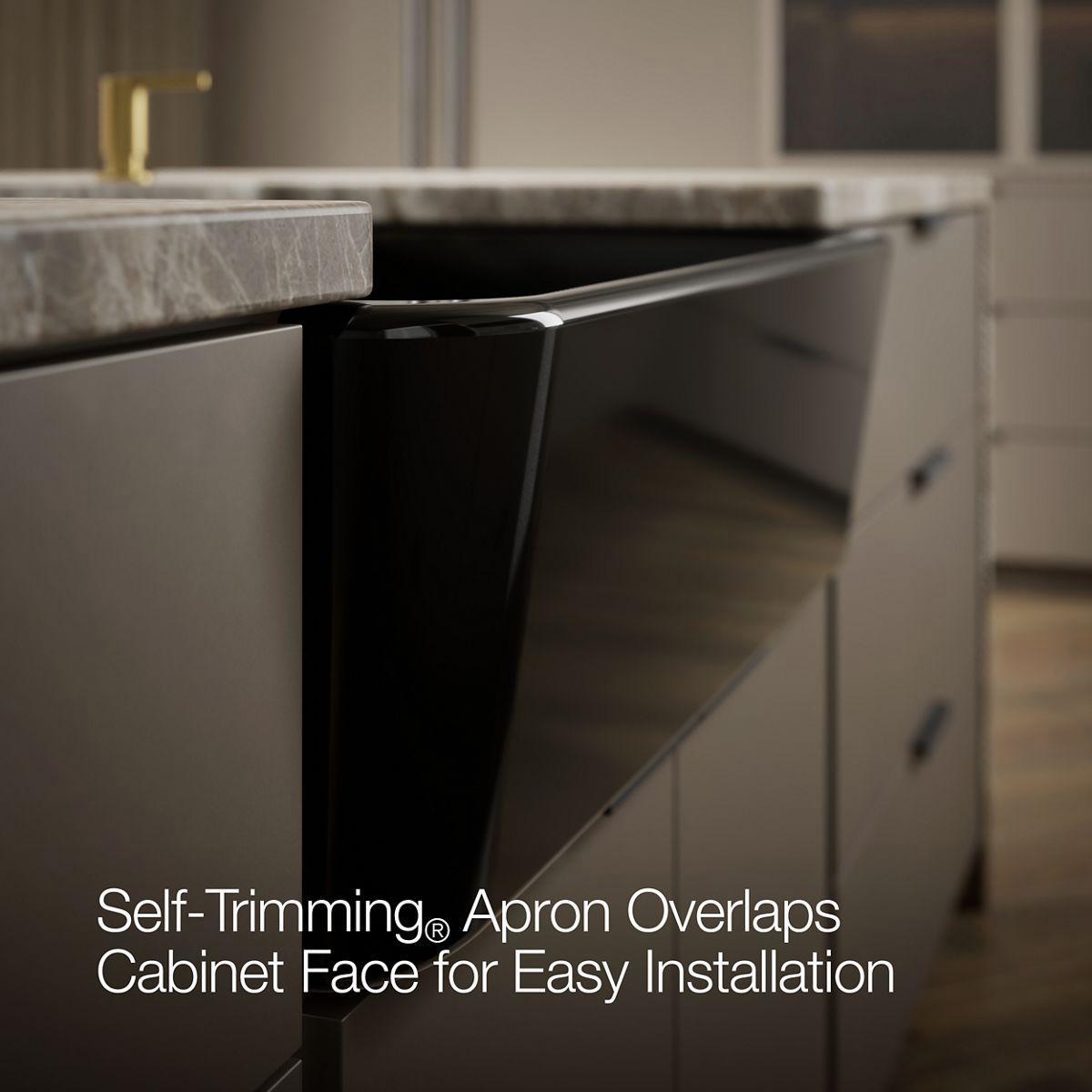 - Self-Trimming® apron overlaps cabinet face for easy installation and beautiful results