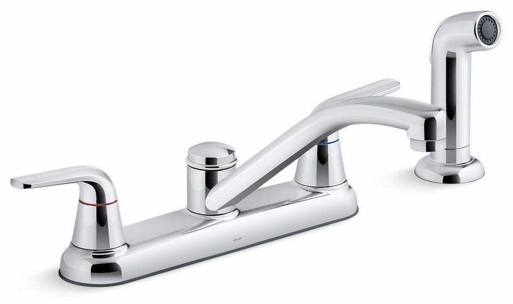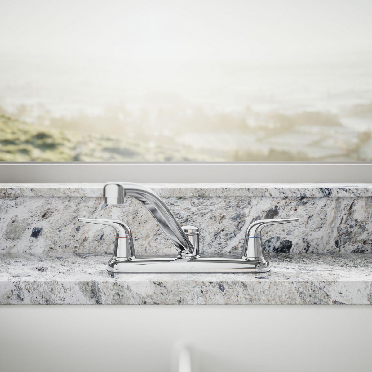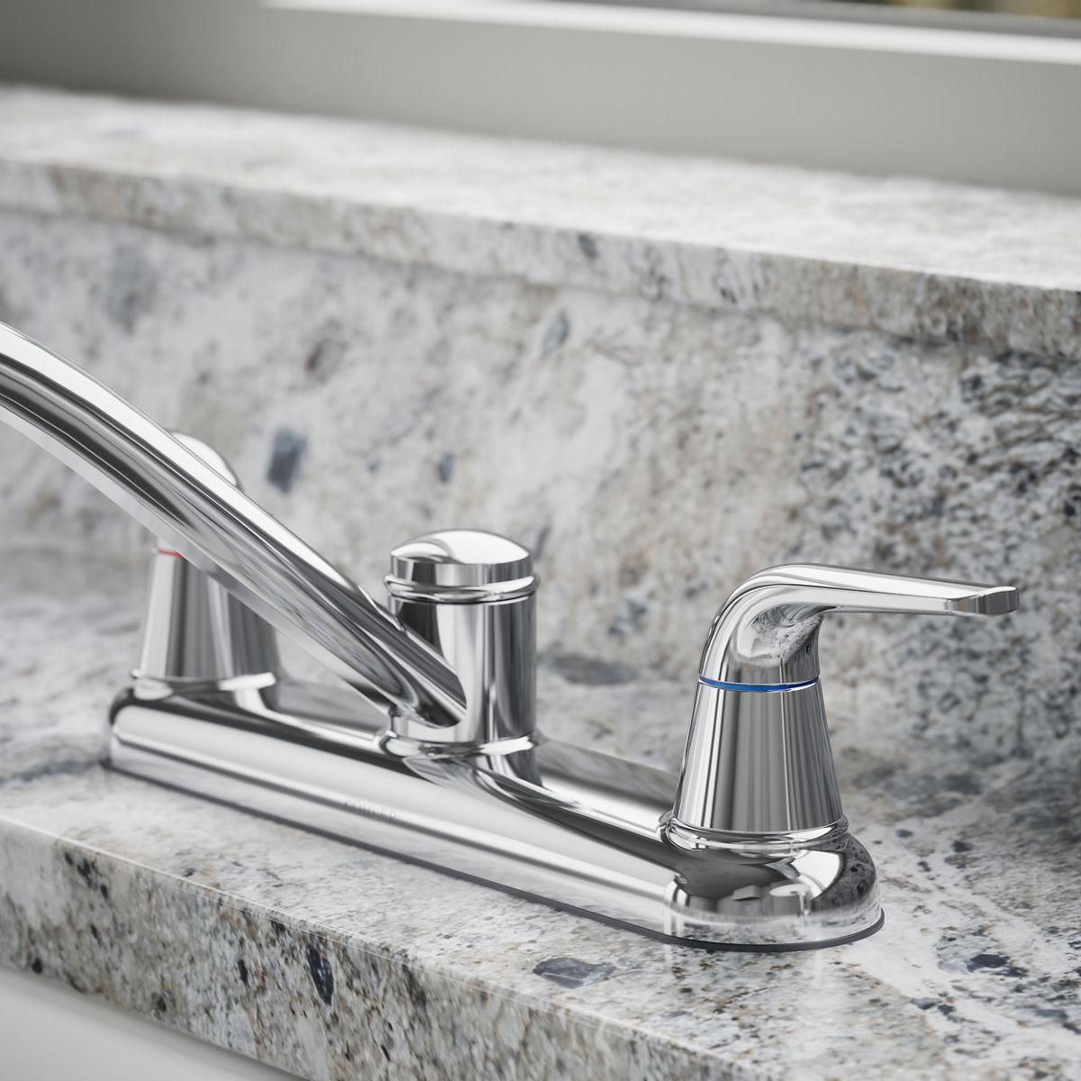 Jolt kitchen sink faucets offer transitional styling that's at home in almost any decorating scheme. Two handles easily adjust volume and temperature. Washerless ceramic disc valving resists wear and debris for precise water control. Even installation is easy with the flexible supply hoses.