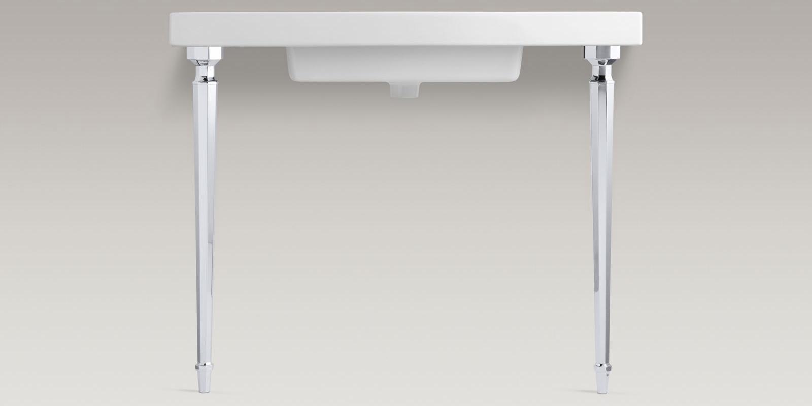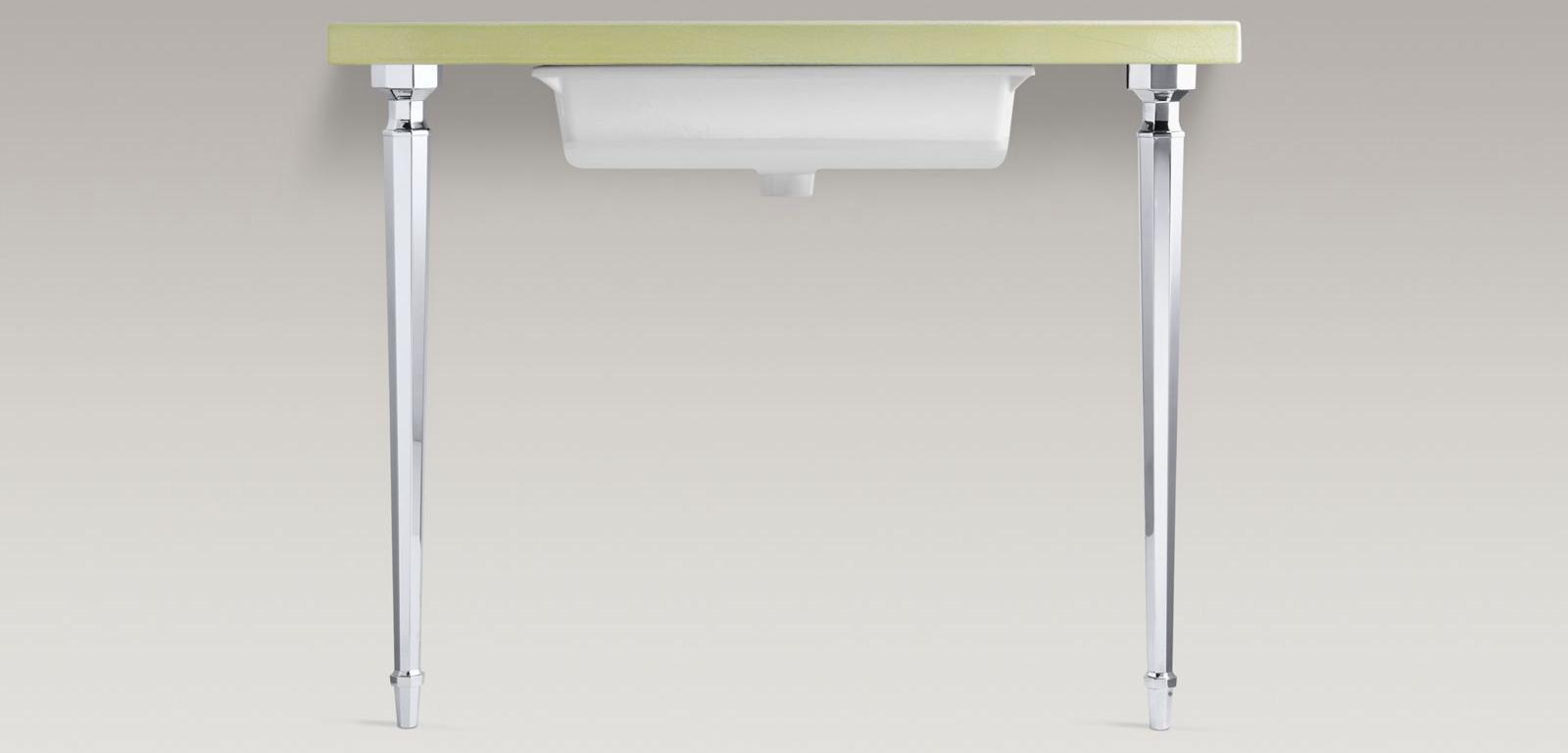 Add a personal touch your Kathryn console table with this pair of legs in your choice of metallic finishes. With a unique octagonal shape, these legs create an upscale look for the bathroom, especially when coordinated with other items in the Kathryn collection.