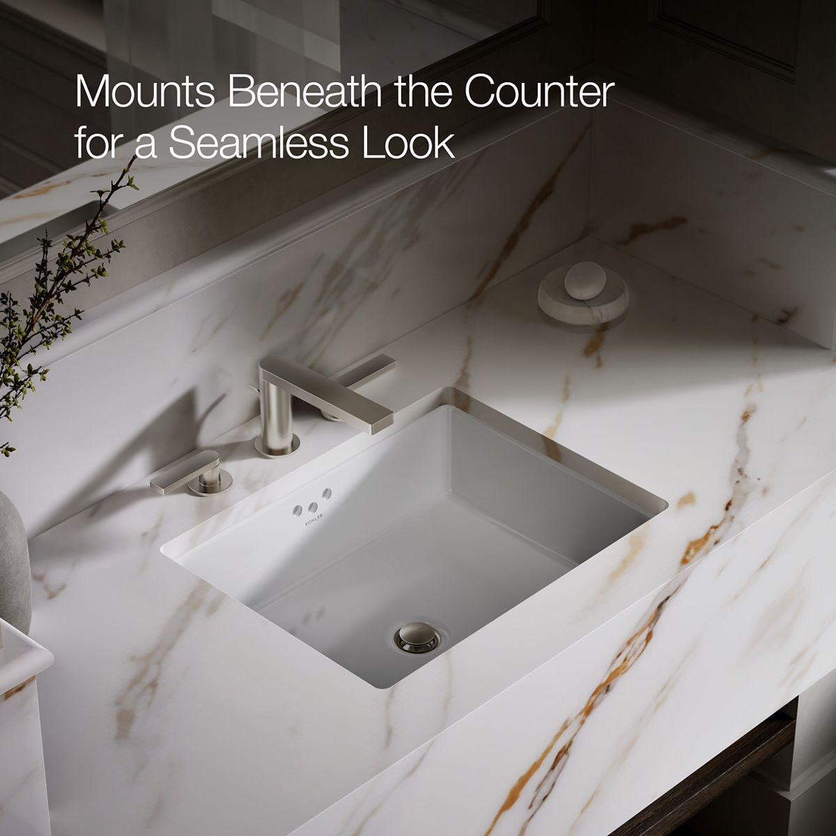Inspired by a 1929 KOHLER exhibition at the Metropolitan Museum of Art, the Kathryn collection captures the unforgettable style of a bygone era. With its modern interpretation of retro styling, this rectangular undermount sink makes a striking addition to the bathroom.