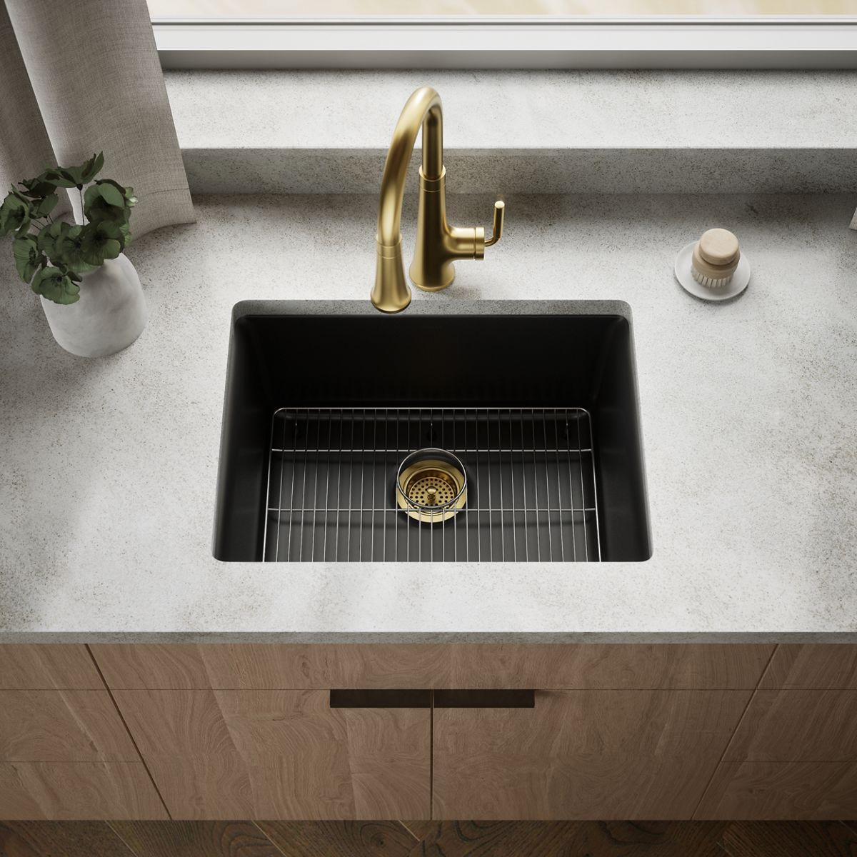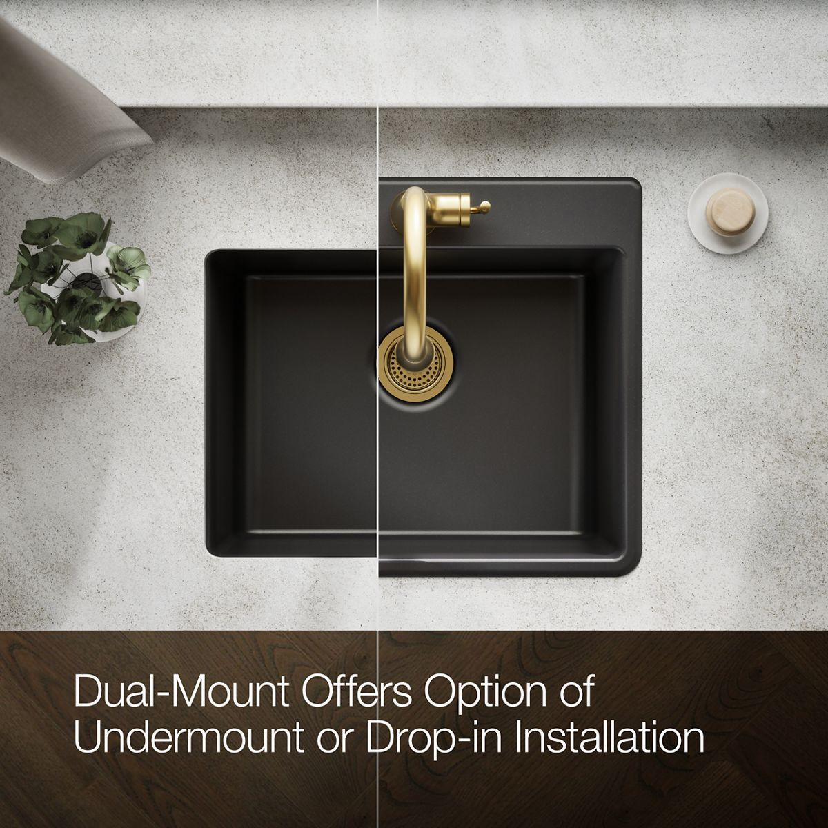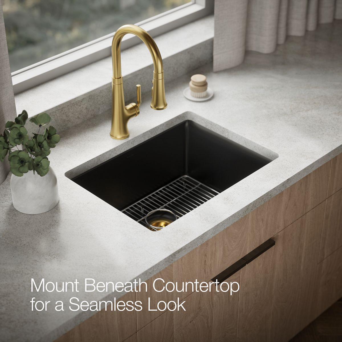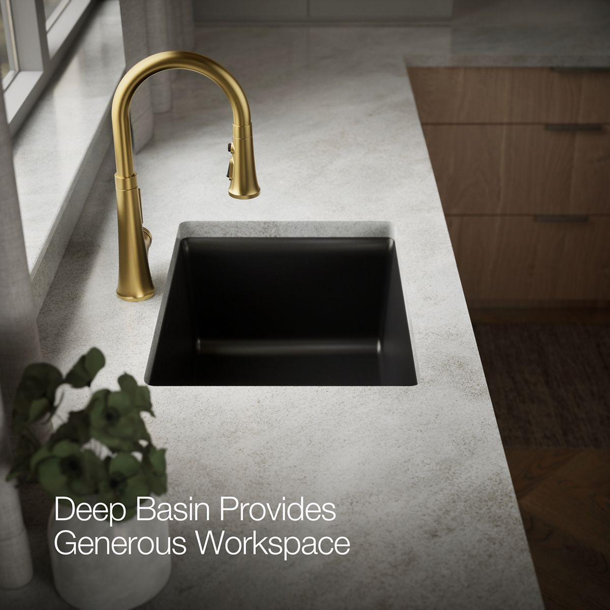 The Kennon single-bowl sink features an elegant design that complements any kitchen decor, and a generous 10 depth ideal for laundry and utility rooms. The Kennon sink is made of KOHLER Neoroc, a matte-finish composite material designed for extreme durability and unmatched beauty. Richly colored to complement any countertop, Neoroc resists scratches, stains and fading and is highly heat- and impact-resistant.