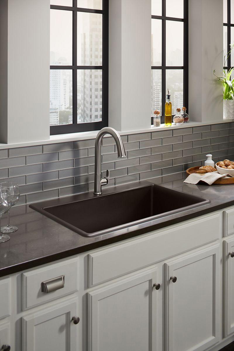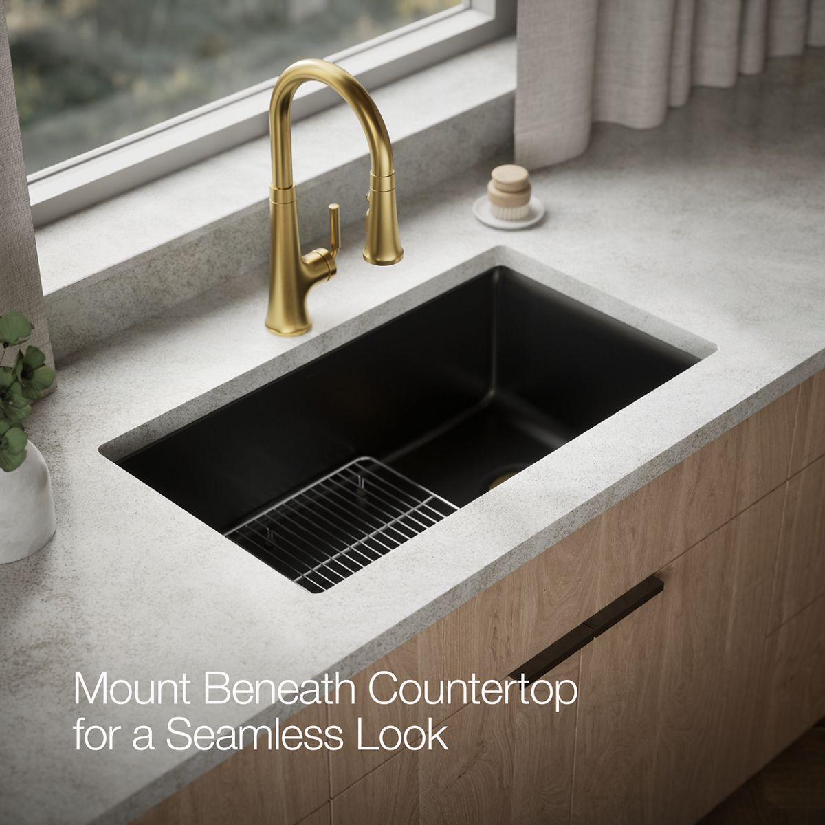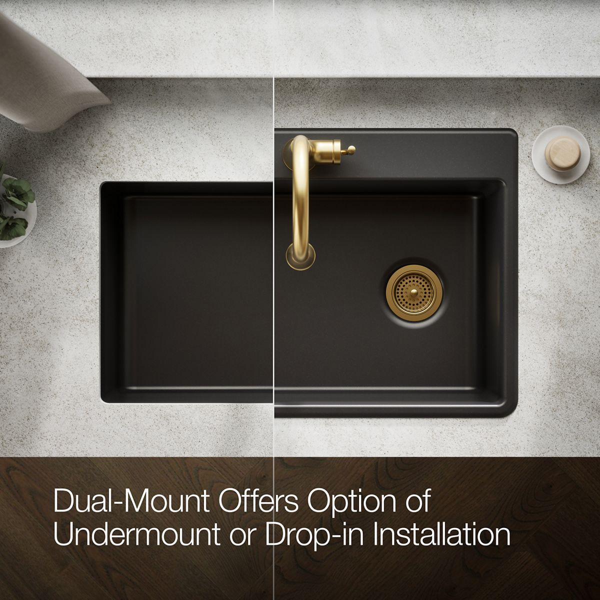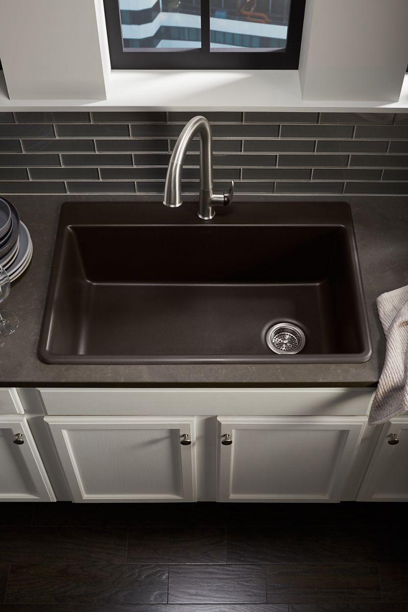 The Kennon single-bowl sink features an elegant, wave-like curve that complements any kitchen decor. The Kennon sink is made of KOHLER Neoroc, a matte-finish composite material designed for extreme durability and unmatched beauty. Richly colored to complement any countertop, Neoroc resists scratches, stains, and fading and is highly heat- and impact-resistant.