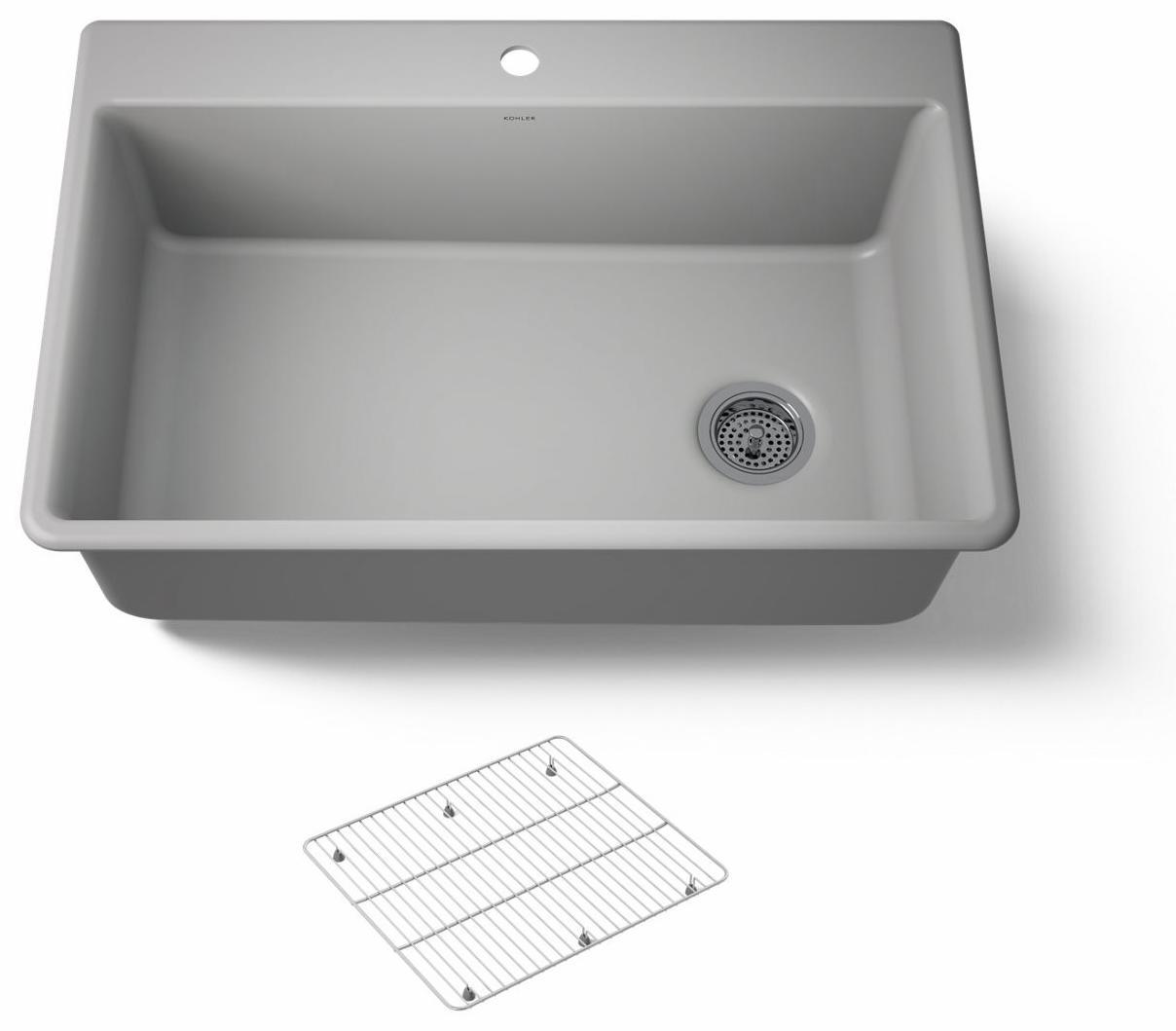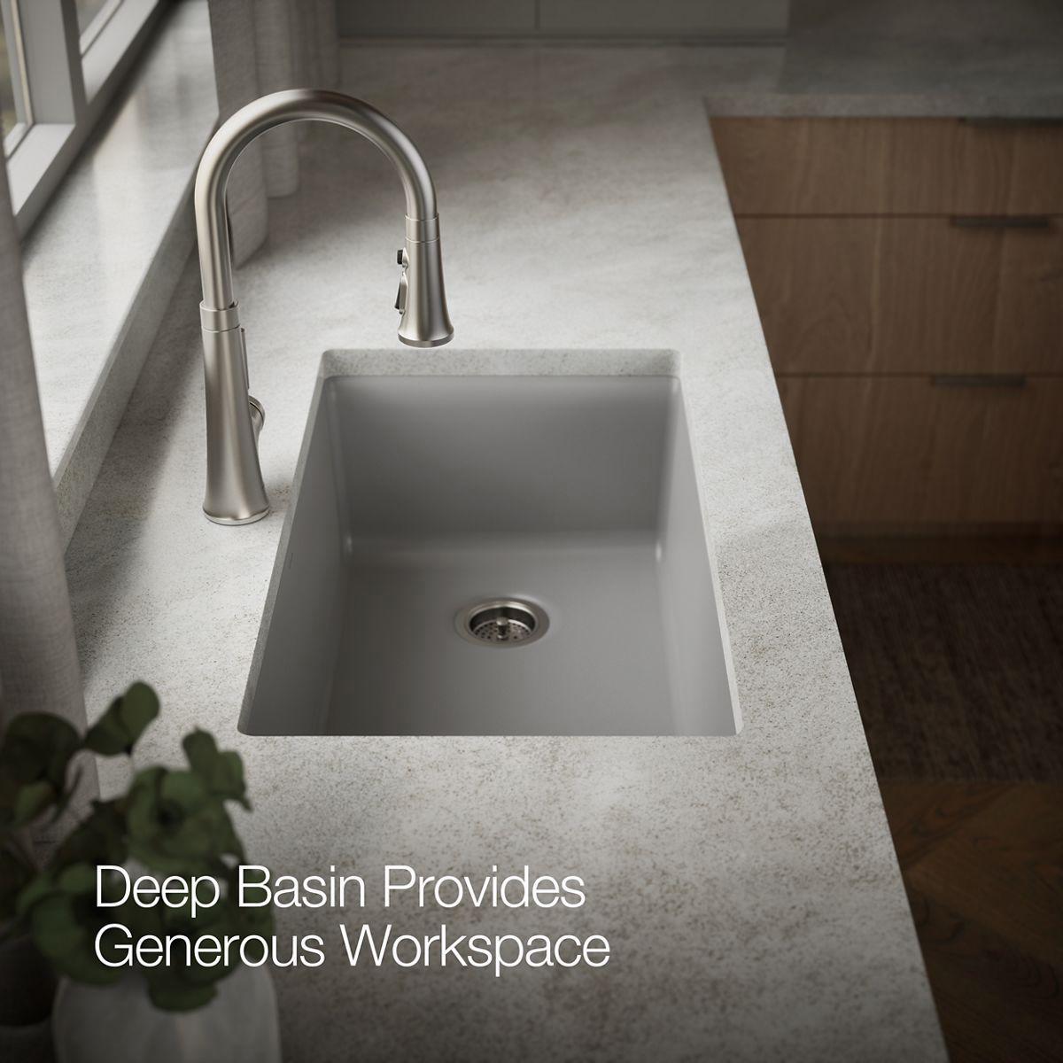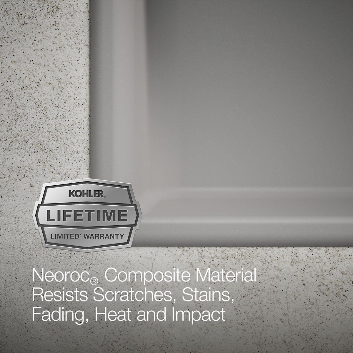 The Kennon single-bowl sink features an elegant, wave-like curve that complements any kitchen decor. The Kennon sink is made of KOHLER Neoroc, a matte-finish composite material designed for extreme durability and unmatched beauty. Richly colored to complement any countertop, Neoroc resists scratches, stains, and fading and is highly heat- and impact-resistant.