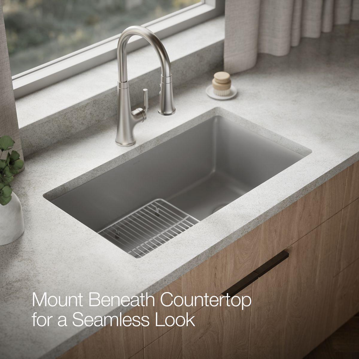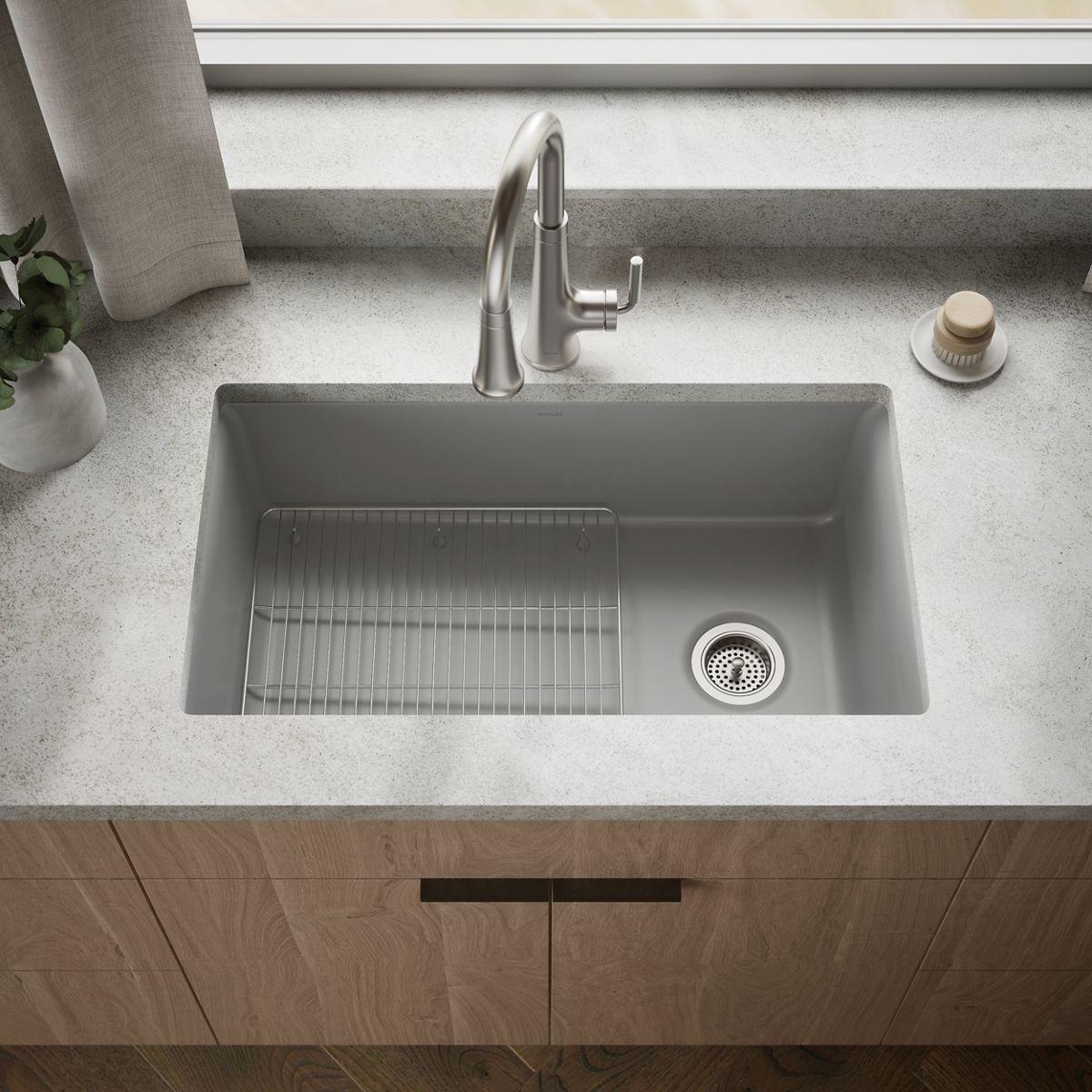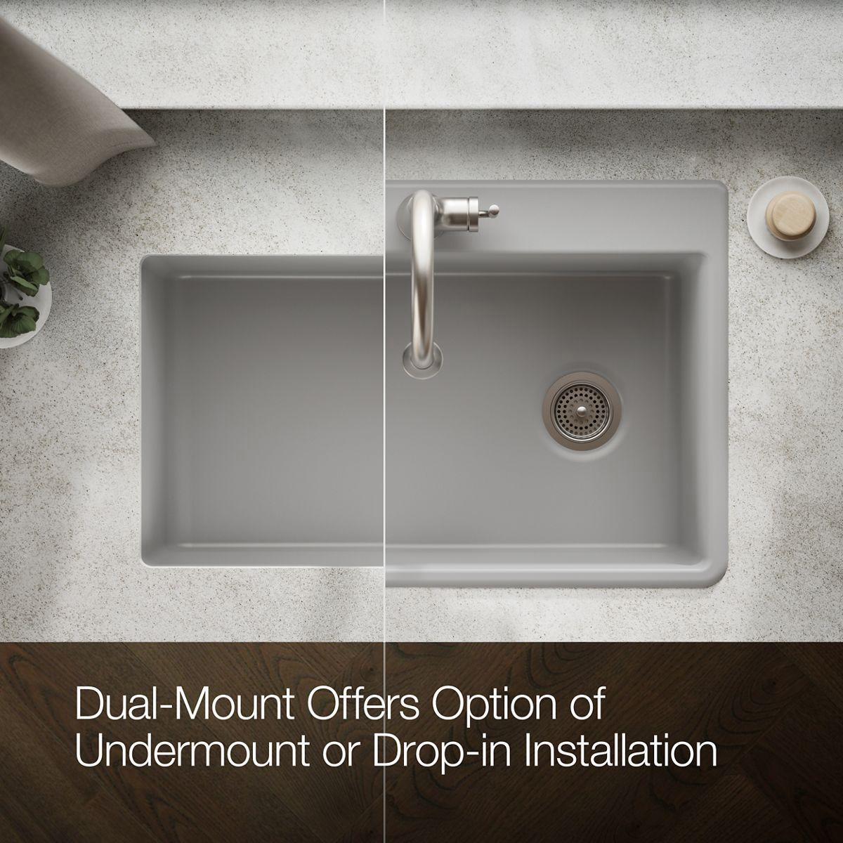 The Kennon single-bowl sink features an elegant, wave-like curve that complements any kitchen decor. The Kennon sink is made of KOHLER Neoroc, a matte-finish composite material designed for extreme durability and unmatched beauty. Richly colored to complement any countertop, Neoroc resists scratches, stains, and fading and is highly heat- and impact-resistant.