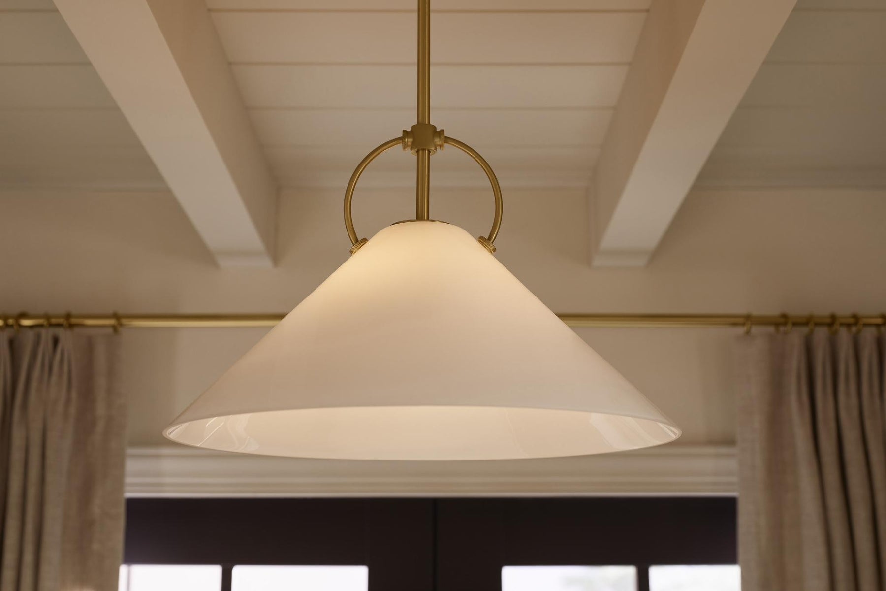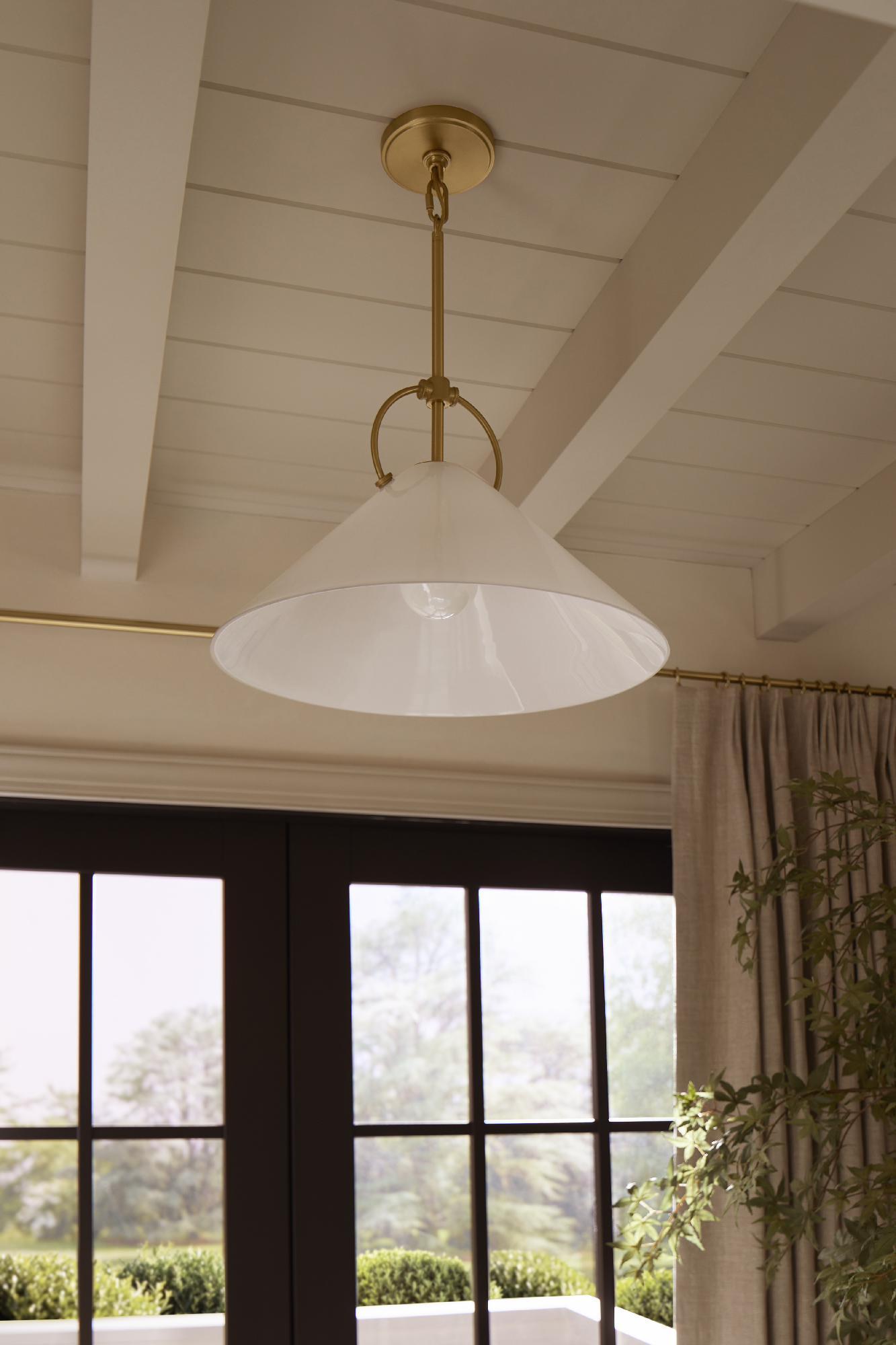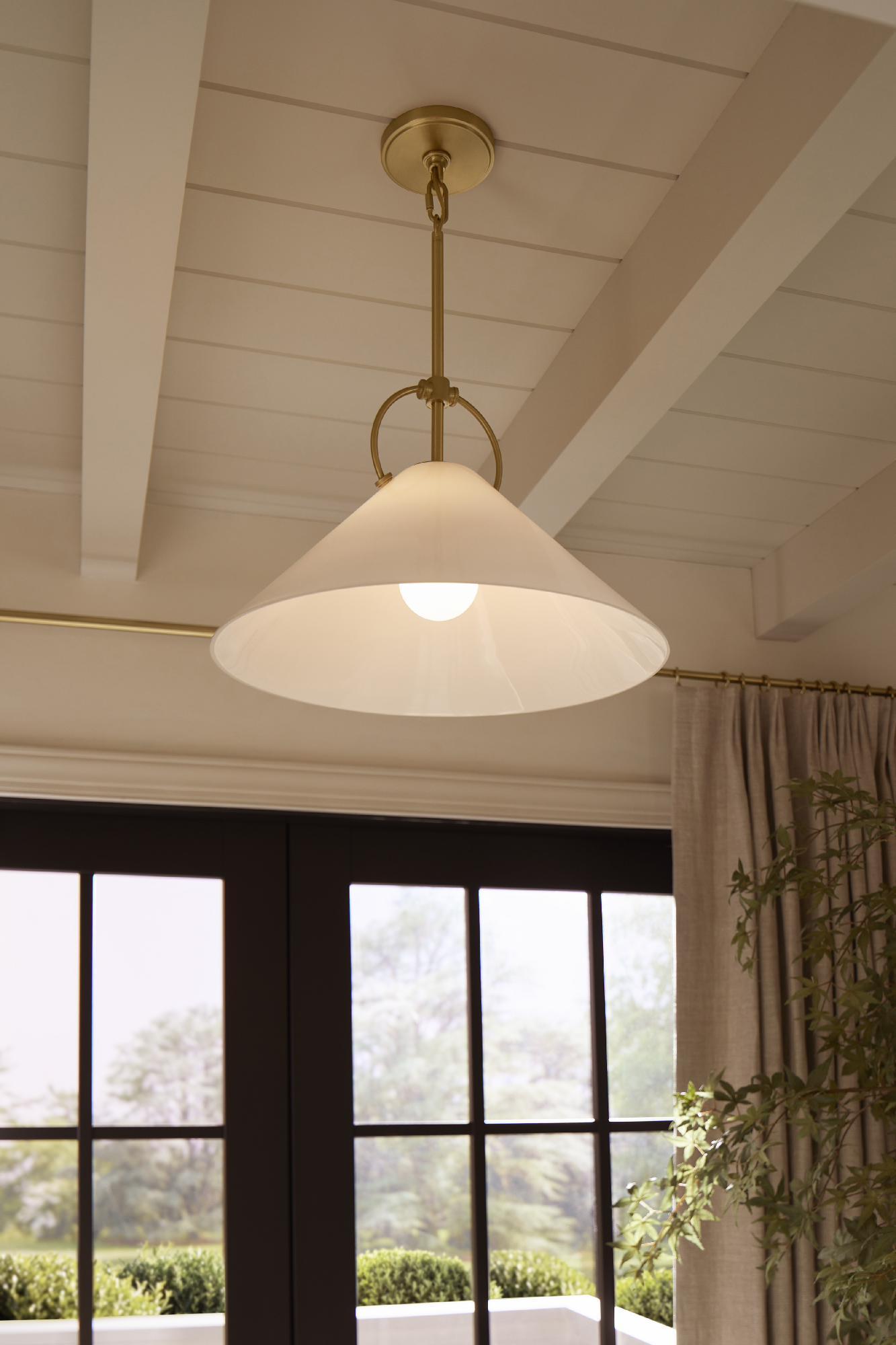 - Flared milk glass shade perfectly diffuses the light to add an elegant warmth to your room