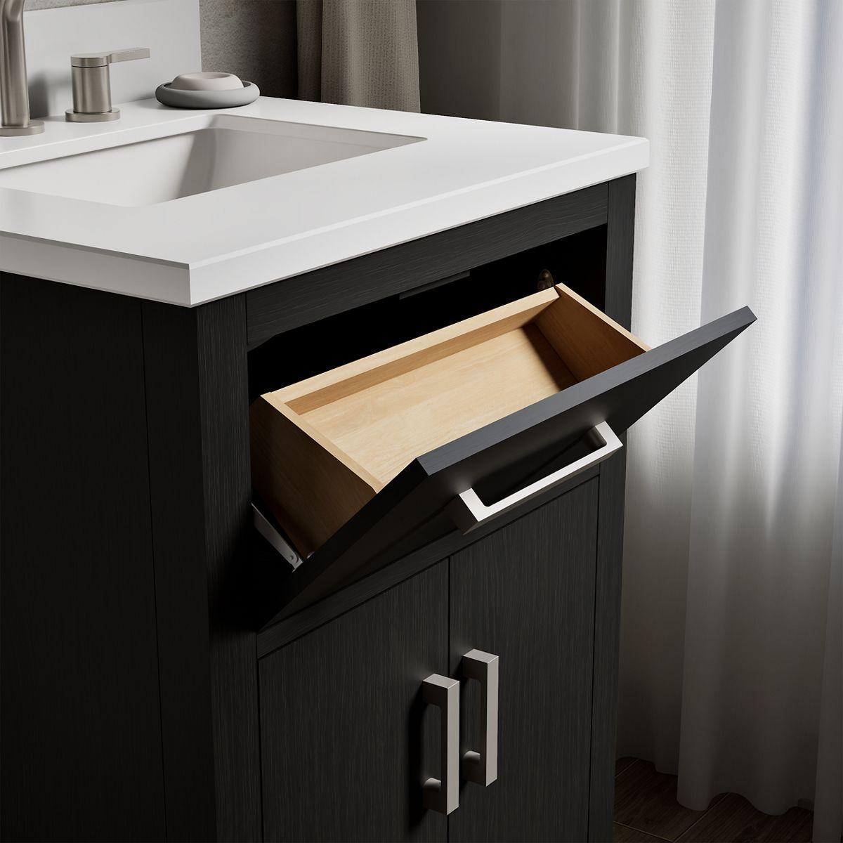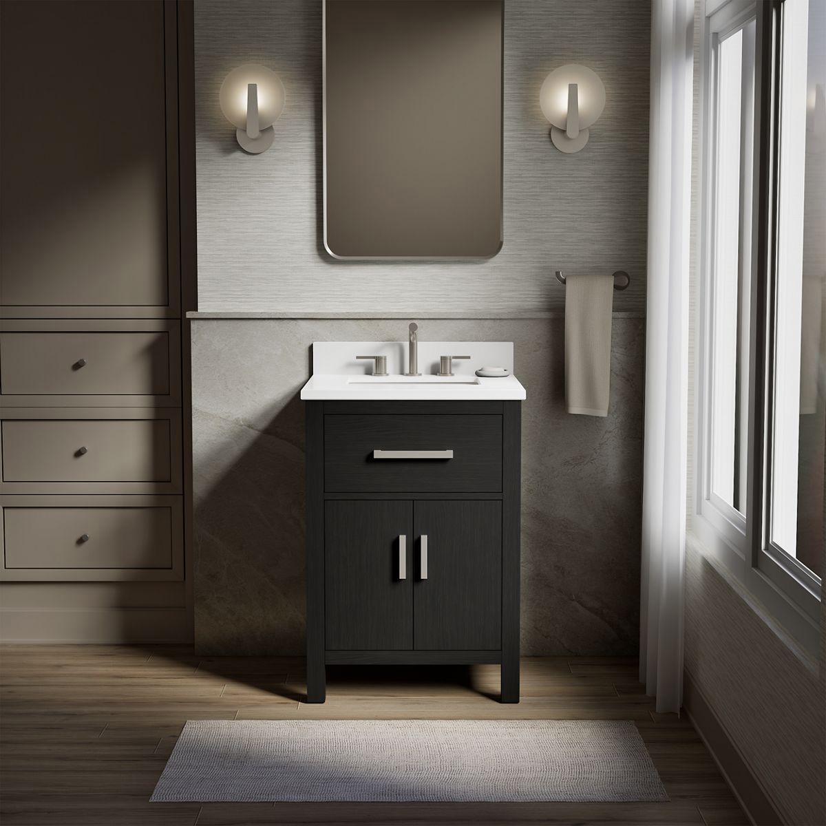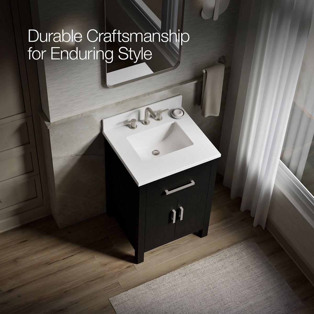 The Kresla vanity collection brings a quiet sophistication into your bathroom space with its with clean, architectural lines and range of finishes, and with its roomy interior you'll find ample storage space to keep your bathroom organized and clutter-free. The Kresla 24" vanity set includes cabinet, quartz countertop with matching backsplash, sink, and hardware. With KOHLER, it’s easy to find the design solution that’s right for you.