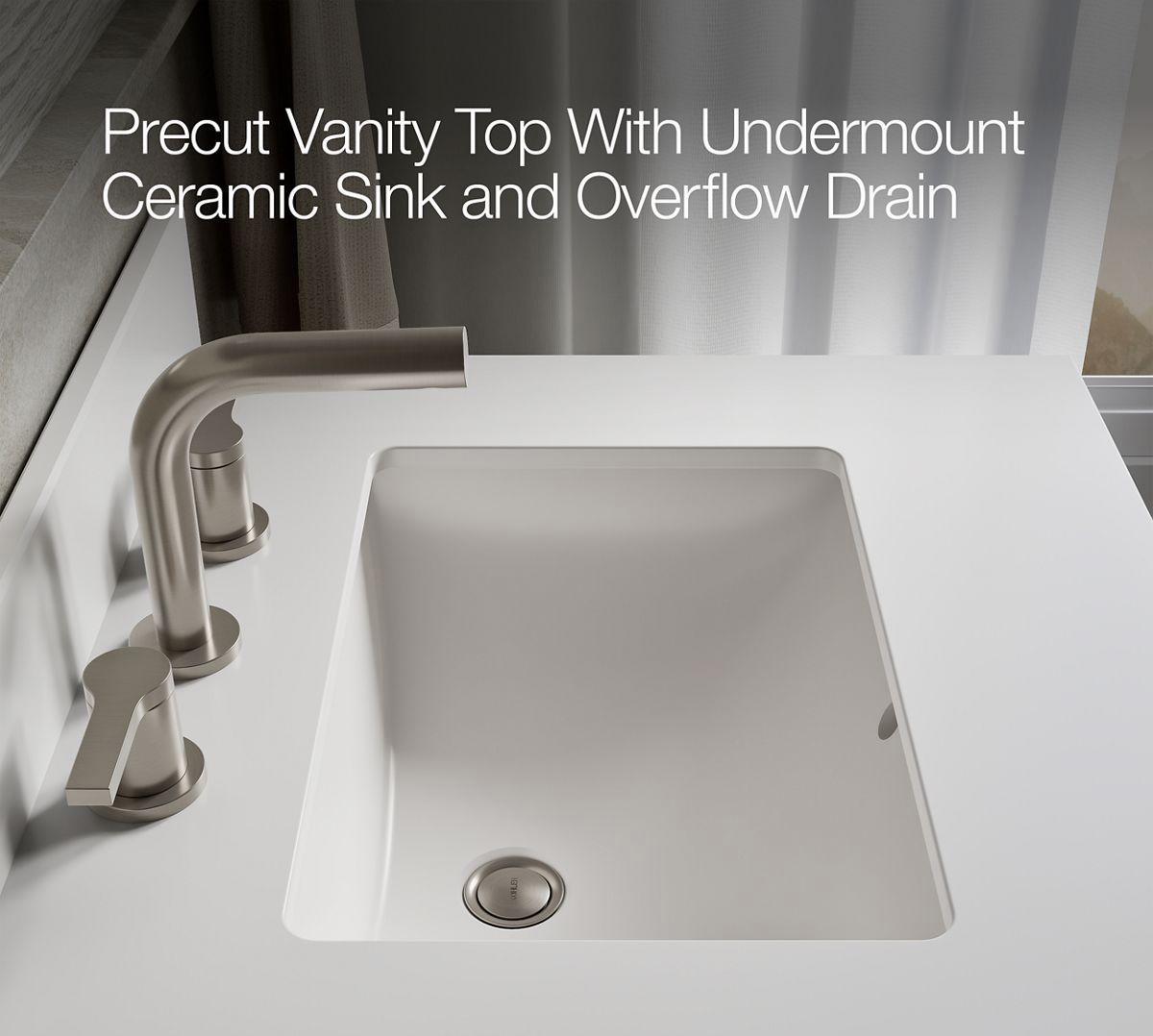 - Vanity top has 8" (203 mm) widespread faucet holes; requires deck-mount faucet (sold separately)