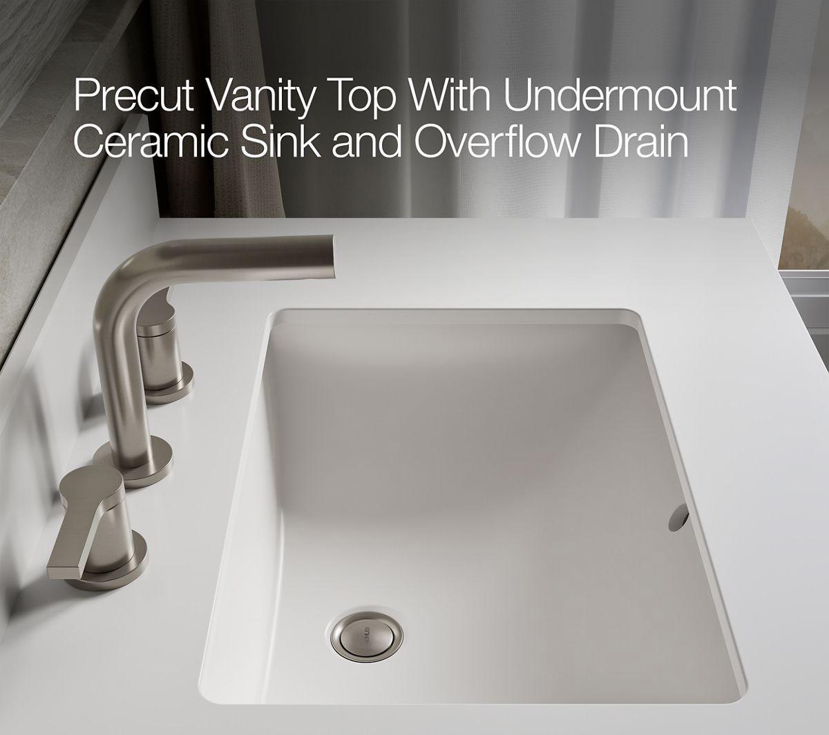 - Vanity top has 8" (203 mm) widespread faucet holes; requires deck-mount faucet (sold separately)
