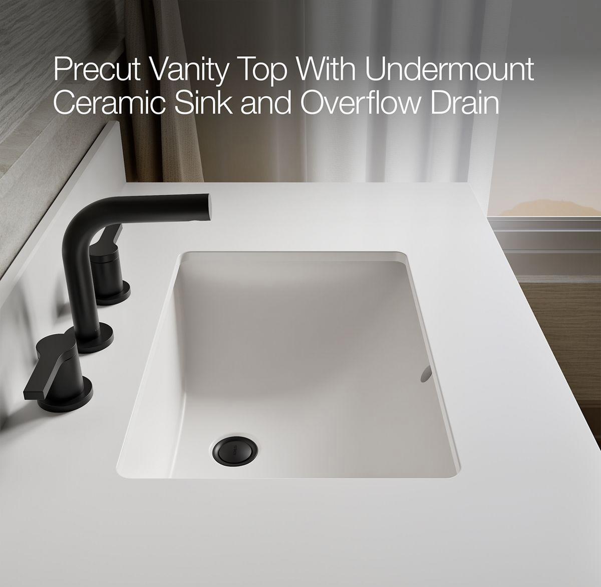 - Vanity top has 8" (203 mm) widespread faucet holes; requires deck-mount faucet (sold separately)