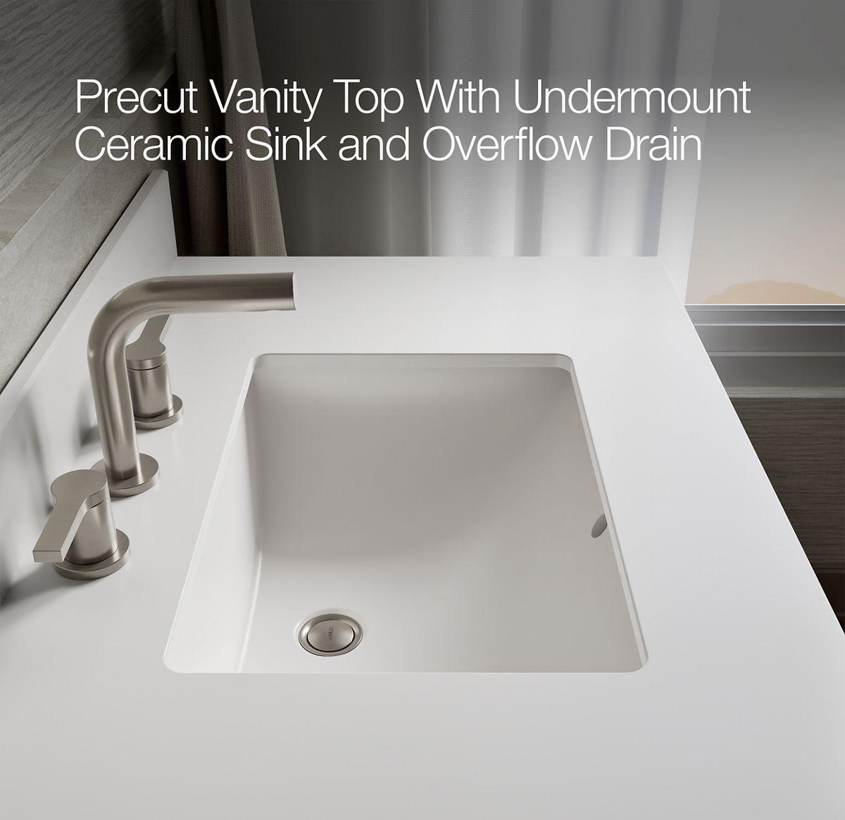 - Separate vanity top makes for simplified installation