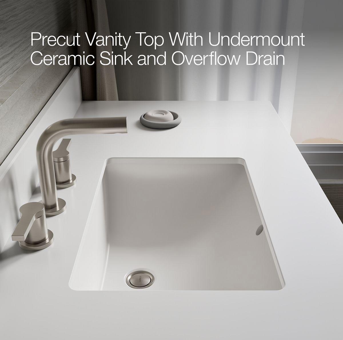 - Vanity top has 8" (203 mm) widespread faucet holes; requires deck-mount faucet (sold separately)