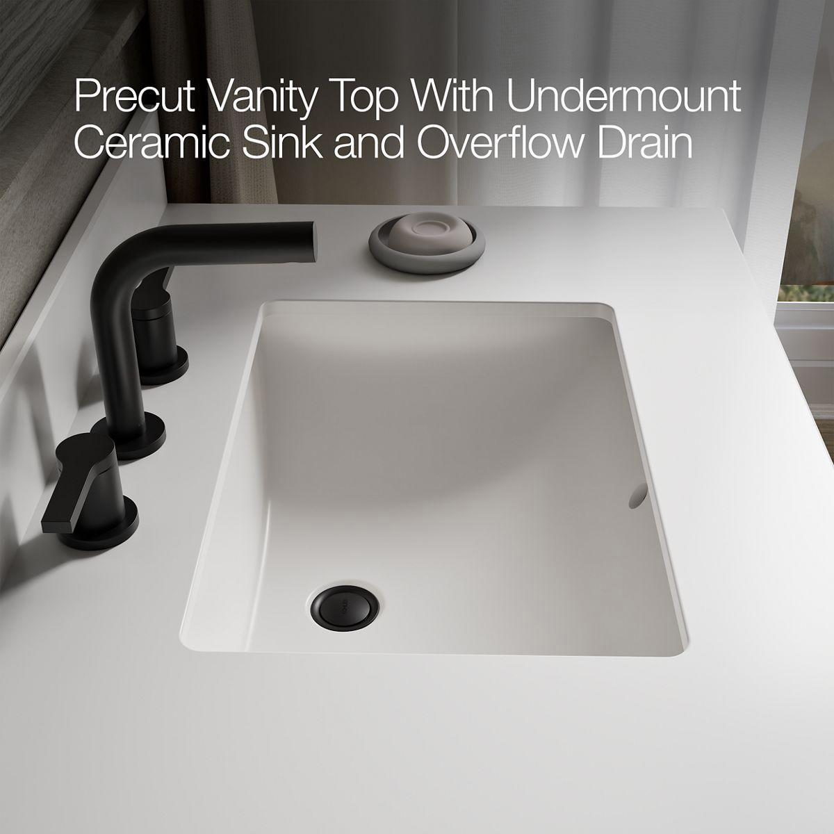 - Vanity top has 8" (203 mm) widespread faucet holes; requires deck-mount faucets (sold separately)