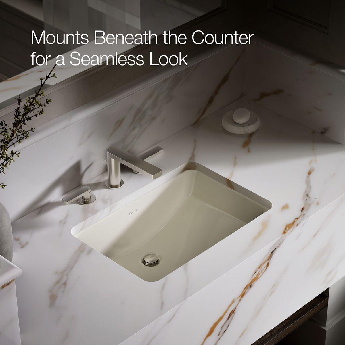 Ladena's upswept curves offer generous basin space and a striking contemporary look, particularly when paired with a countertop that exposes the basin's glazed underside.