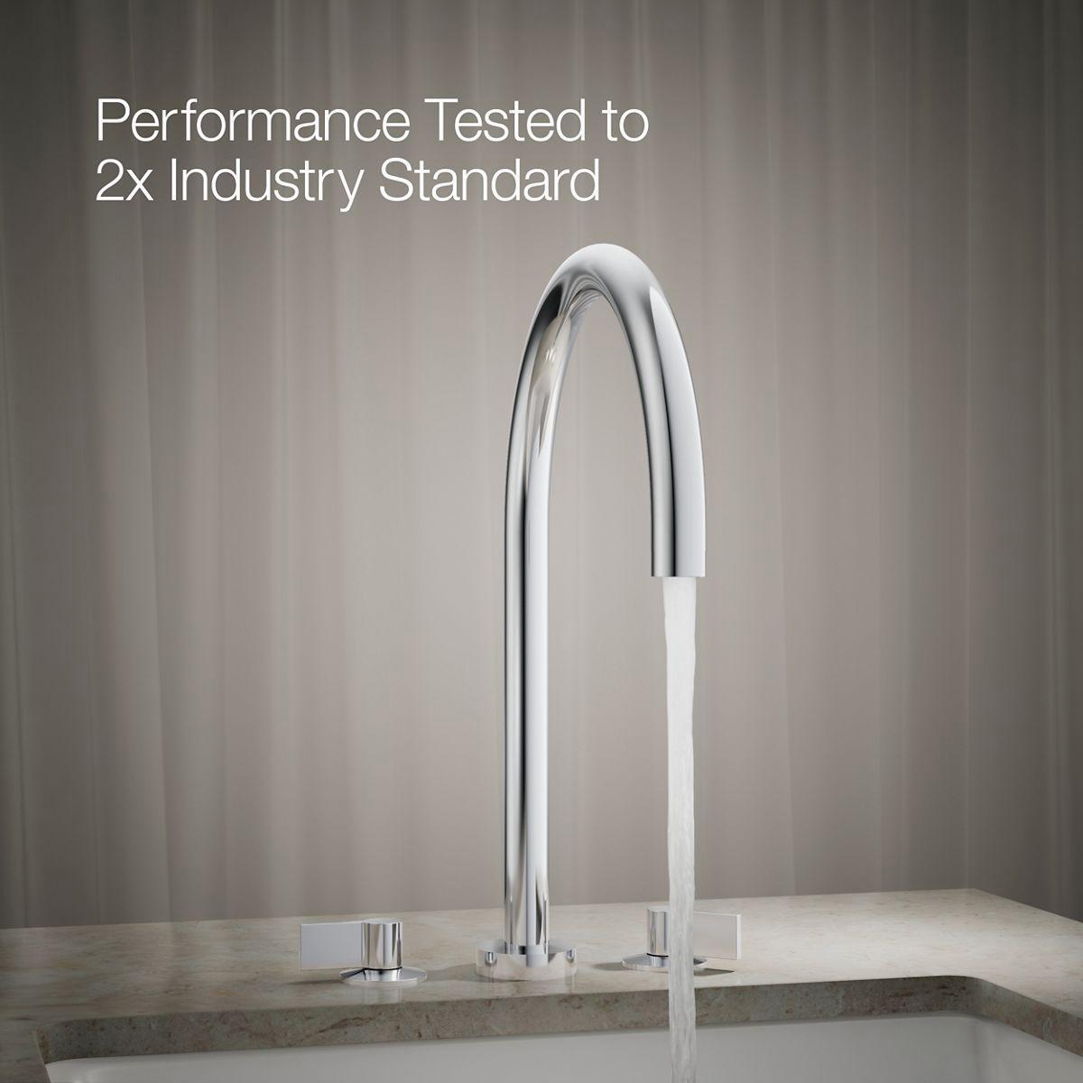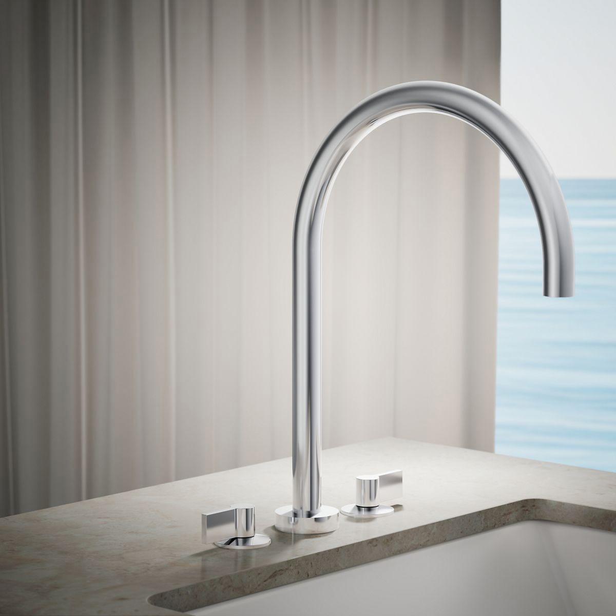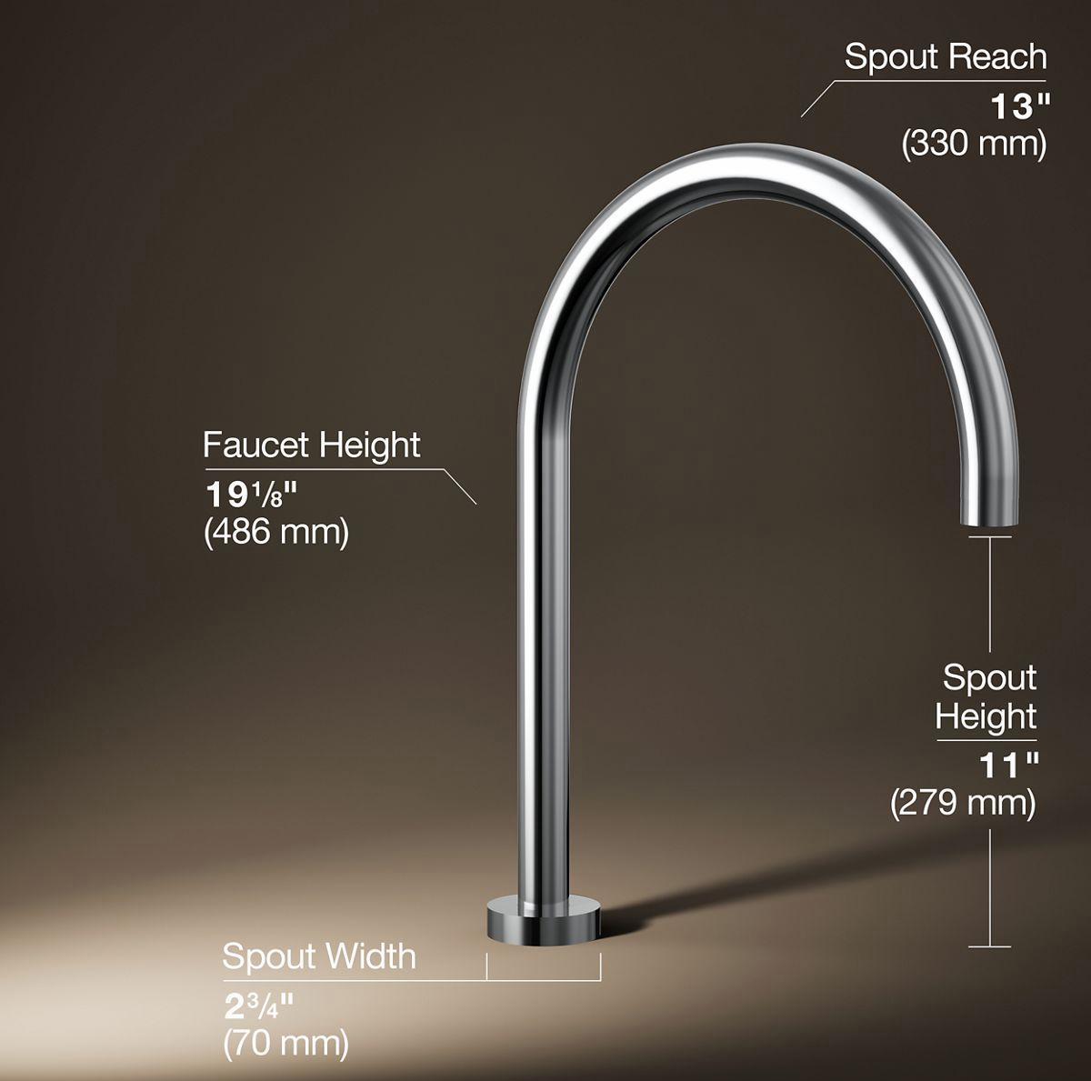This laminar flow bath filler adds a visually striking solid stream of water to your bath. The long, elegant spout mounts to the deck and arches gracefully into the tub. A sophisticated counterpart to the sok overflowing bath and Purist baths, this bath filler is a beautiful match for contemporary decor.
