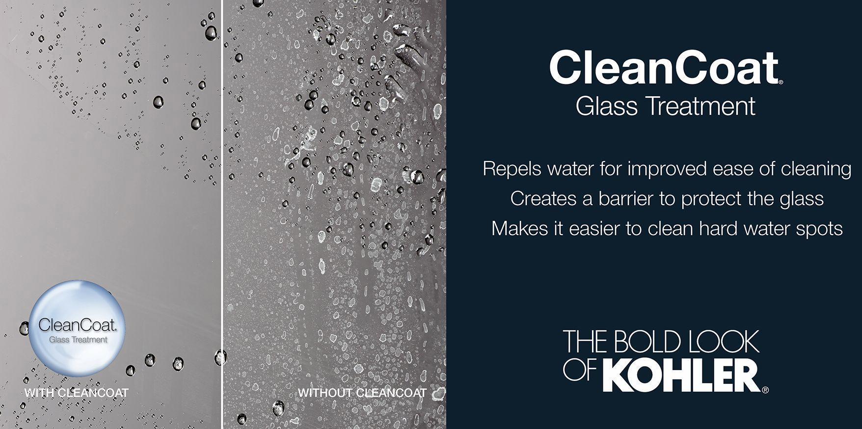 - CleanCoat®+ glass coating creates a hydrophobic barrier that repels water, soap scum, and residue, saving time and protecting shower doors 10 times longer than original CleanCoat. (Based on 2021 internal wear/abrasion testing using a microfiber cloth.)