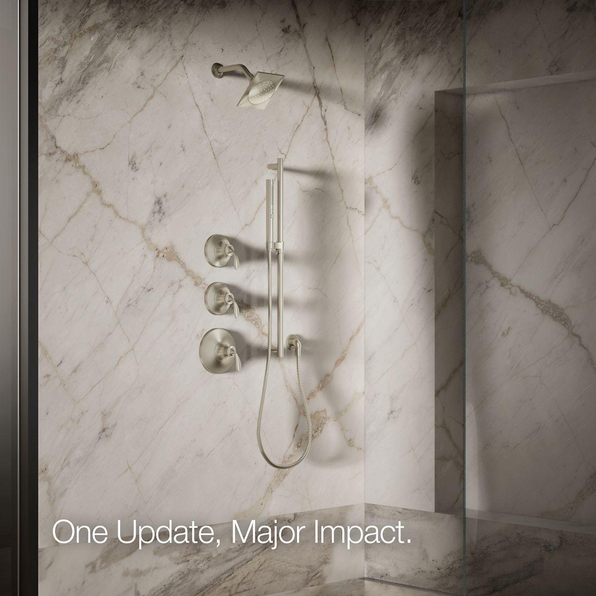 This Loure single-function showerhead brings substantial water savings to your bathroom with a 1.75 gpm flow rate, combined with Katalyst technology for a completely indulgent showering experience. With a new nozzle pattern, internal waterway design, and air-induction system, Katalyst technology maximizes every water drop and creates a richer, more intense flow of water that heightens the shower's sensory experience. By infusing two liters of air per minute, Katalyst delivers a powerful, voluptuous spray that clings to the body with larger, fuller water drops.