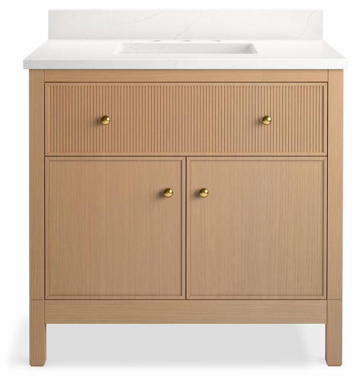 Drawing inspiration from the archives, the Malin vanity collection from Kohler x Studio McGee combines classic and modern influences in a timeless expression for the home. With its distinctive square legs and clean lines, the Malin collection represents an undeniable Shaker sensibility. Integrated reeding detail, delicate door framing, and classic mushroom knobs—three details found throughout furniture design history—add a captivating combination of layers for a uniquely versatile and timeless design.