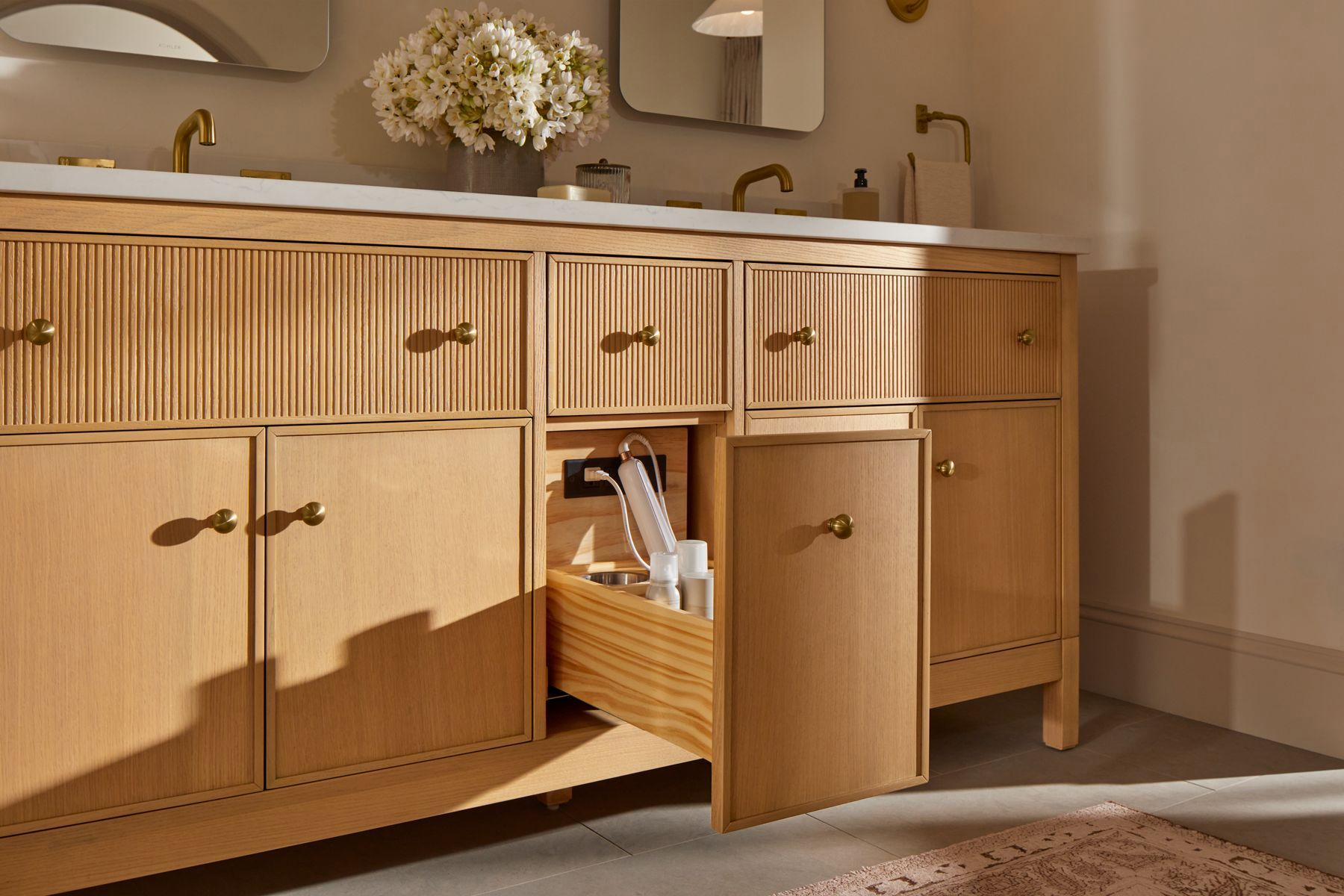 Drawing inspiration from the archives, the Malin vanity collection from Kohler x Studio McGee combines classic and modern influences in a timeless expression for the home. With its distinctive square legs and clean lines, the Malin collection represents an undeniable Shaker sensibility. Integrated reeding detail, delicate door framing, and classic mushroom knobs — three details found throughout furniture design history — add a captivating combination of layers for a uniquely versatile and timeless design.