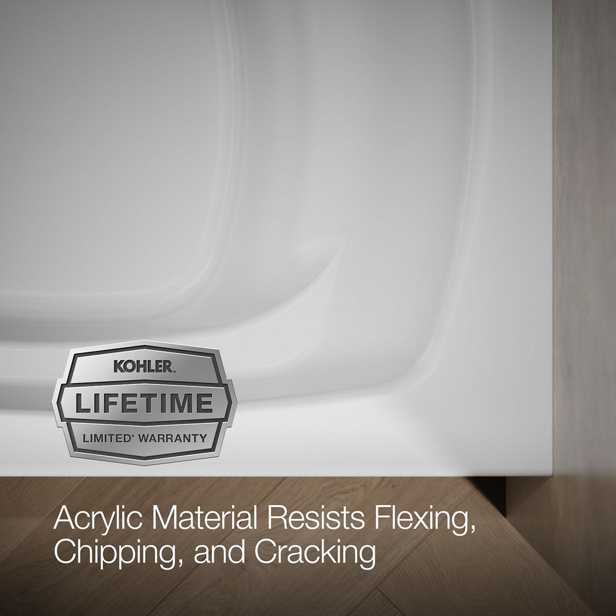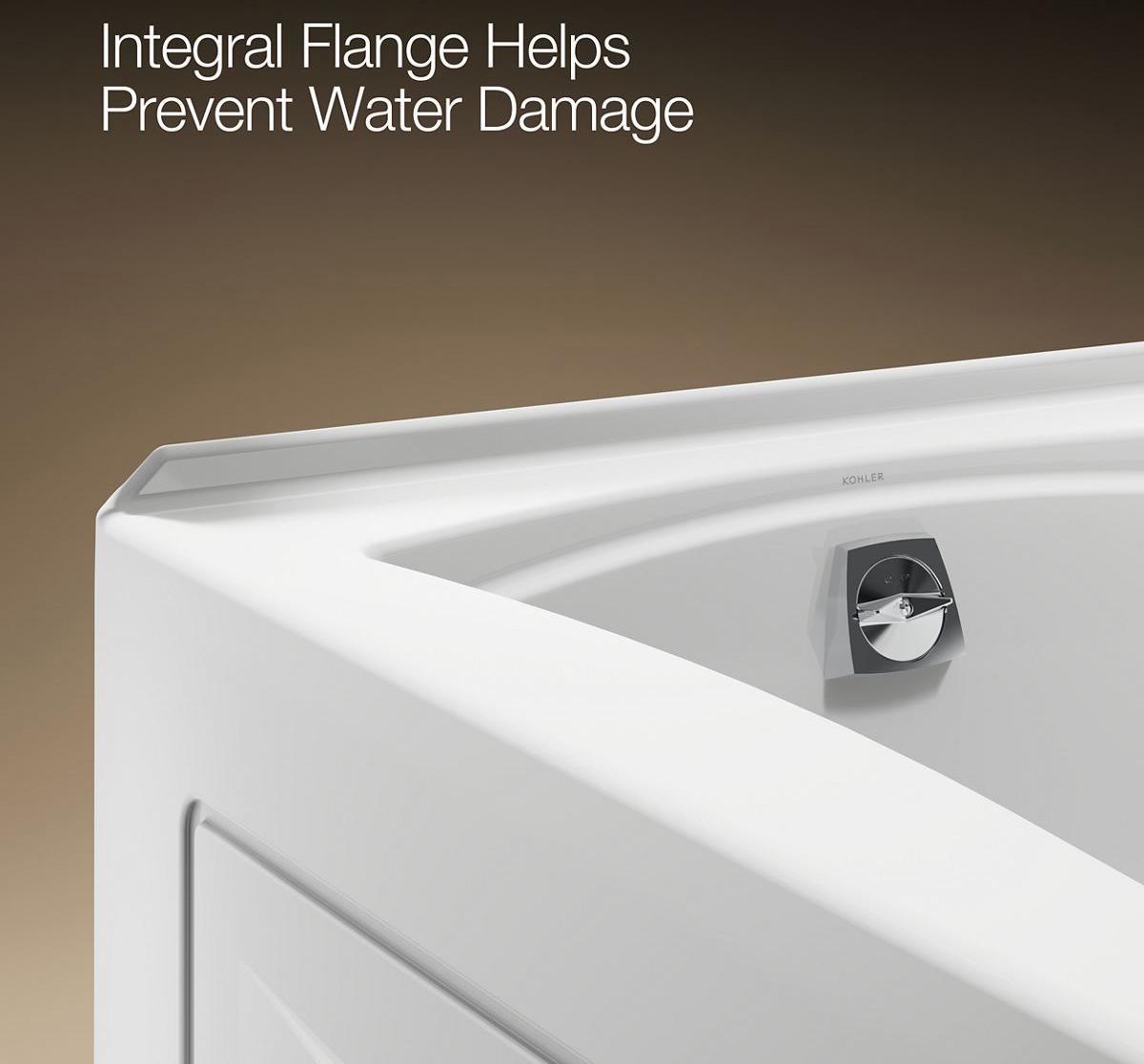 - Integral flange helps prevent water from seeping behind wall and simplifies alcove installation.