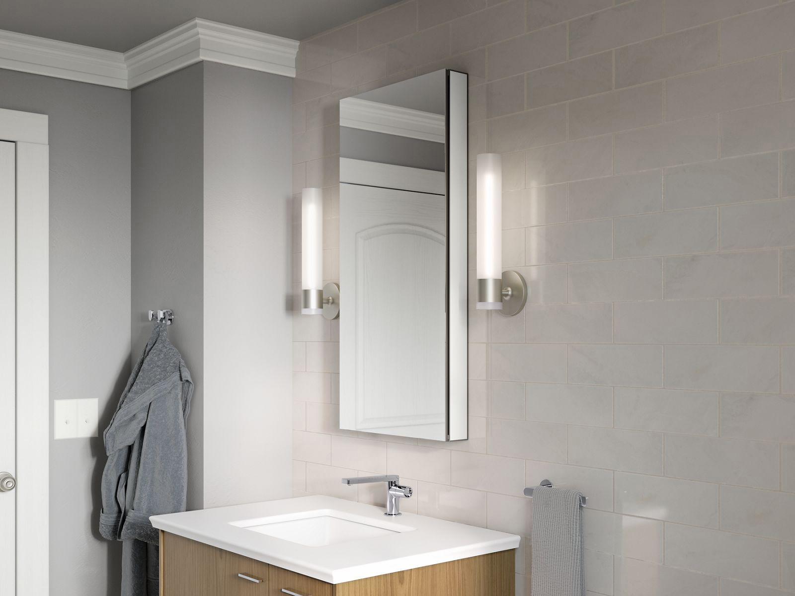 Maximize your bathroom storage with the Maxstow medicine cabinet. Staggered shelving holds tall and short items with no wasted space, fitting everything you need and keeping clutter off your countertop. The slim 3-1/2-deep design provides the same internal storage space as traditional 5-deep cabinets. Installation is fast and easy—simply screw to the wall, right out of the box.