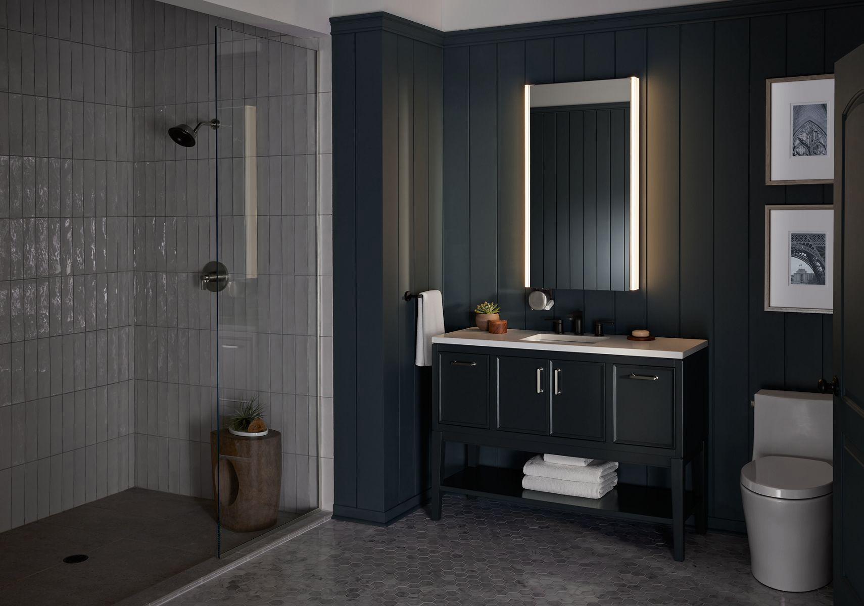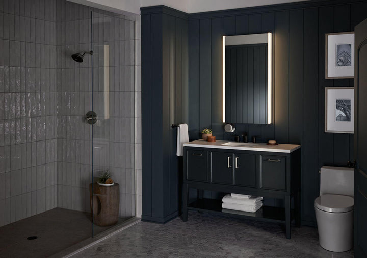 - Side-integrated LED lighting provides optimally bright bathroom vanity lighting for grooming tasks.
