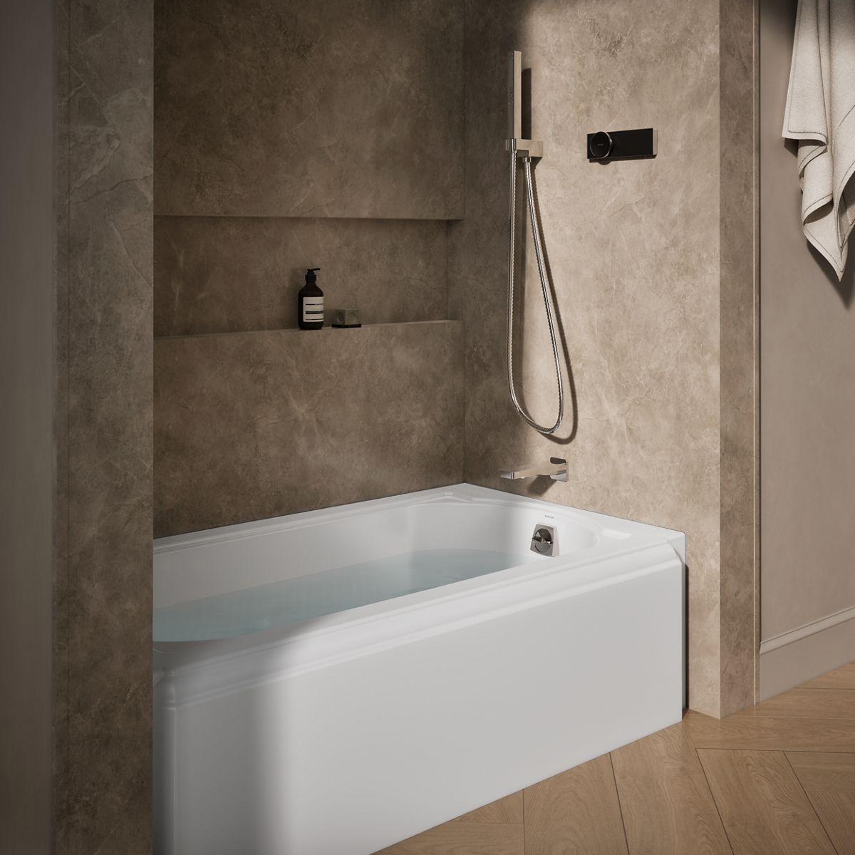 With rich detailing reminiscent of crown molding, Memoirs brings classic architectural style to your bathroom. The bath is constructed of durable cast iron with a Safeguard slip-resistant surface for many years of reliable use. Pair this timeless design with other products in the Memoirs collection for a sophisticated bathroom ensemble.