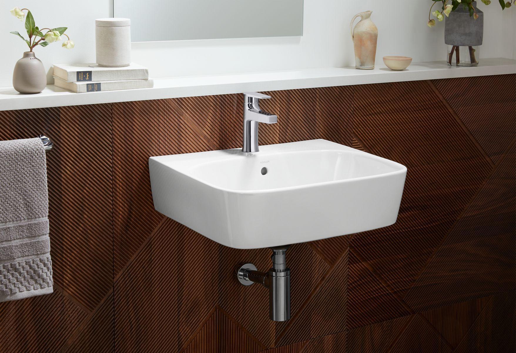 With crisp, clean lines, the ModernLife bathroom sink allows you the freedom to design around it — from contemporary to traditional. And its compact shape lends itself to powder rooms and spaces with smaller footprints.
