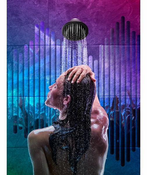 - Wireless speaker can be used outside the shower space, independent of the showerhead, to stream music in any room.