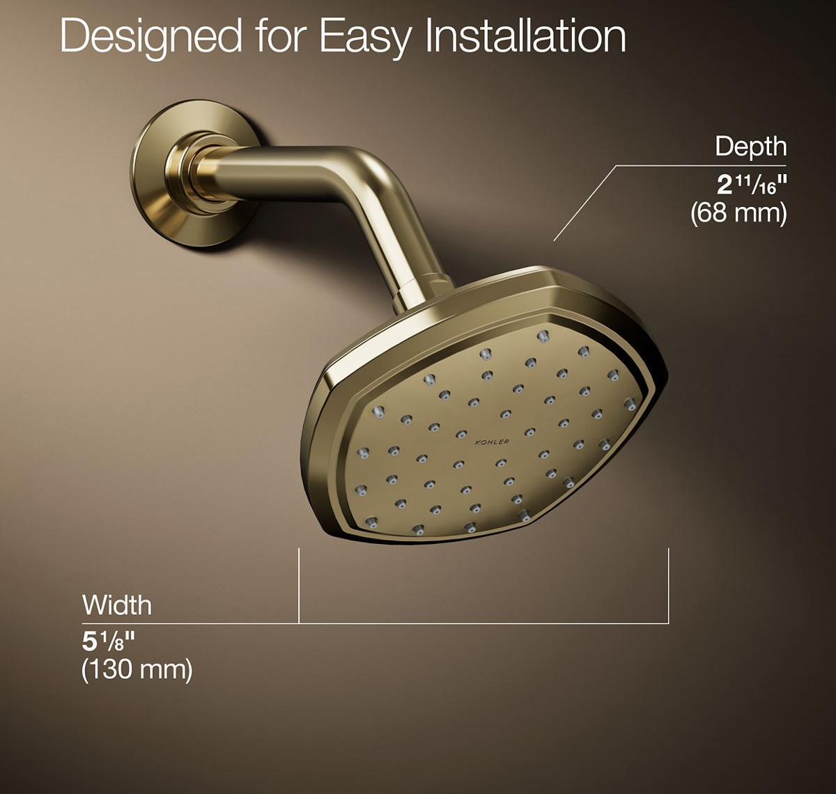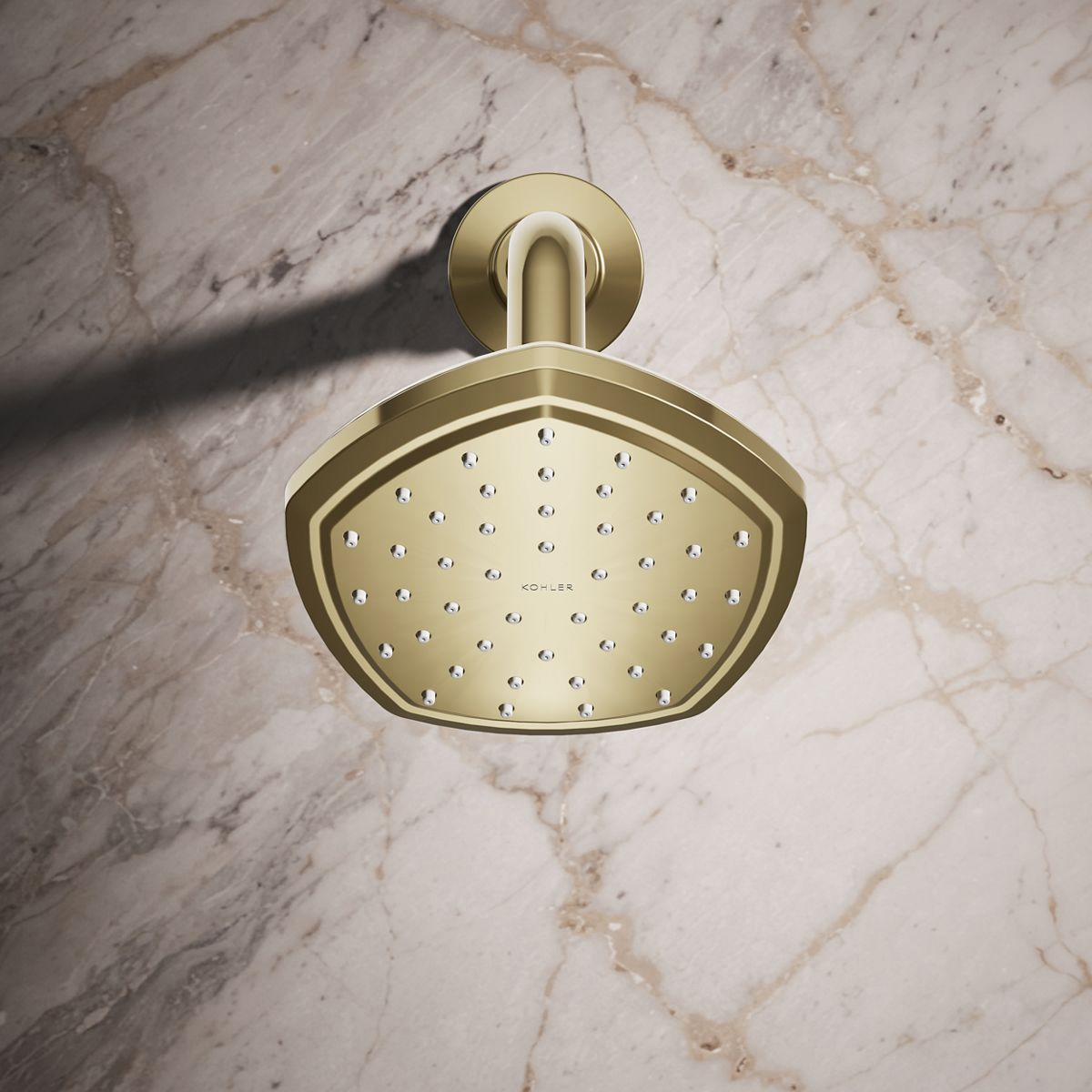 Unapologetically luxurious and truly unforgettable, Occasion bathroom faucets and accessories draw inspiration from 1960s Hollywood glamour and extravagance. Fashioned after the era’s sleek dress lines and bold car designs, the Occasion collection reflects graceful elegance with distinctive pentagonal accents, faceted bases, flowing lines, and delicate edges. Blending classic design and modern details, the 5 pentagon-shaped single-function Occasion showerhead features 65 nozzles and a Full Coverage with Katalyst spray experience for a shower as indulgent as it is fashionable. Pair with coordinating shower arm, valve trim, and other accessories to create your own signature bathroom design.