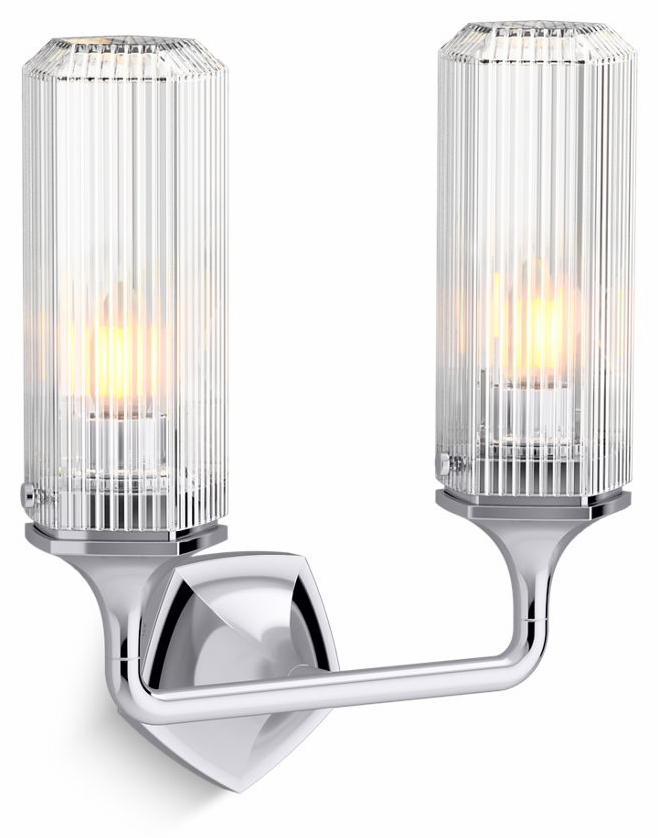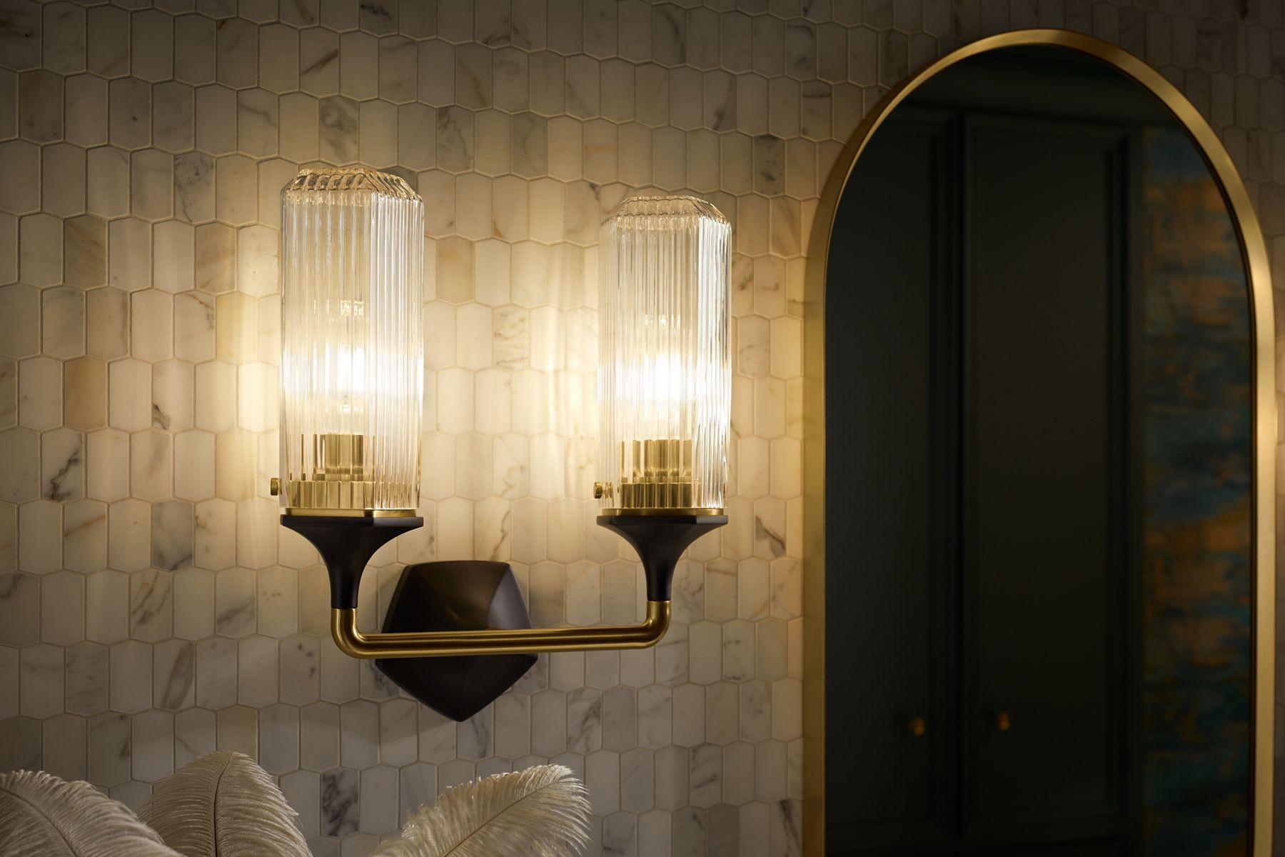 The Occasion lighting collection offers a modern rendition of 1960s Hollywood glamour across sconce, flush-mount, and pendant designs. Faceted metal bases and fluted cylindrical glass shades combine in centerpieces as elegant as they are functional. Like its Golden Age inspiration, the lighting collection evokes a vintage starlet charisma. Alluring and stylish, these statement pieces were created to complement the KOHLER® Occasion faucet collection.