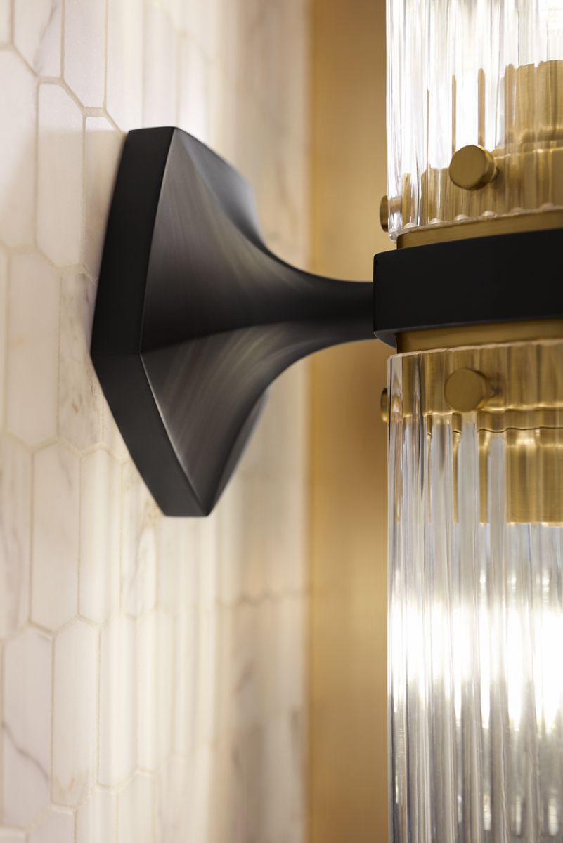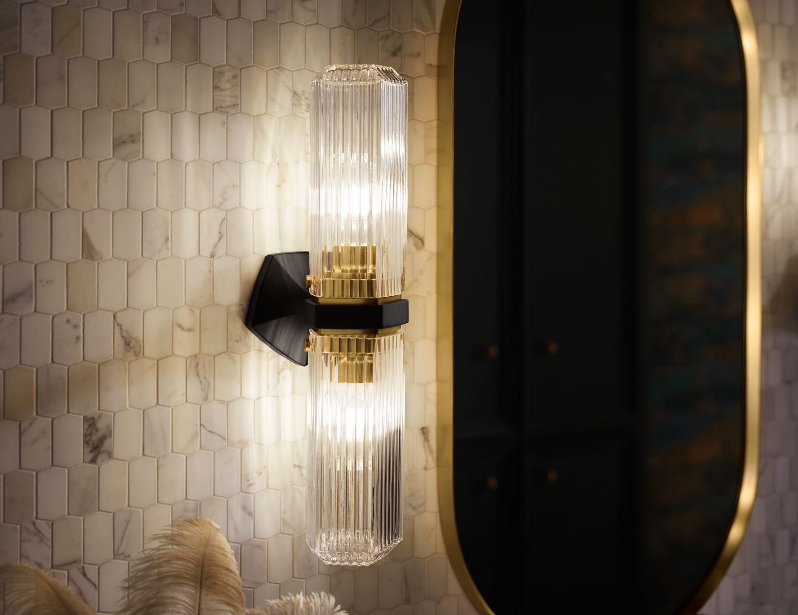 The Occasion lighting collection offers a modern rendition of 1960s Hollywood glamour across sconce, flush-mount, and pendant designs. Faceted metal bases and fluted cylindrical glass shades combine in centerpieces as elegant as they are functional. Like its Golden Age inspiration, the lighting collection evokes a vintage starlet charisma. Alluring and stylish, these statement pieces were created to complement the KOHLER® Occasion faucet collection.