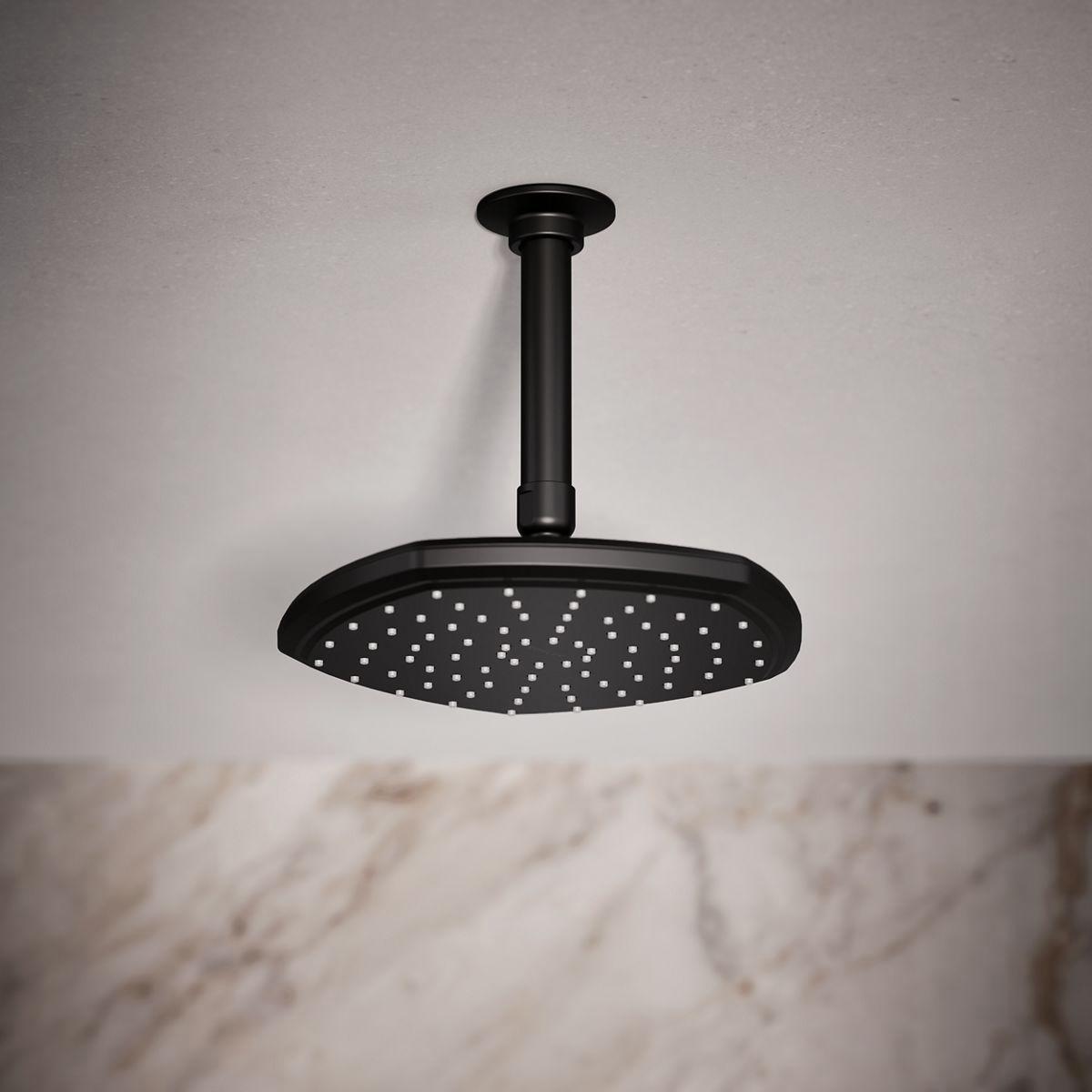 Unapologetically luxurious and truly unforgettable, Occasion bathroom faucets and accessories draw inspiration from 1960s Hollywood glamour and extravagance. Fashioned after the era’s sleek dress lines and bold car designs, the Occasion collection reflects graceful elegance with distinctive pentagonal accents, faceted bases, flowing lines, and delicate edges. Blending classic design with modern details, the 8 pentagon-shaped single-function Occasion rainhead features a Full Coverage with Katalyst spray experience for a shower as indulgent as it is fashionable—all while conserving water. Choose your coordinating rainhead arm, valve trim, and accessories to create your signature bathroom design.