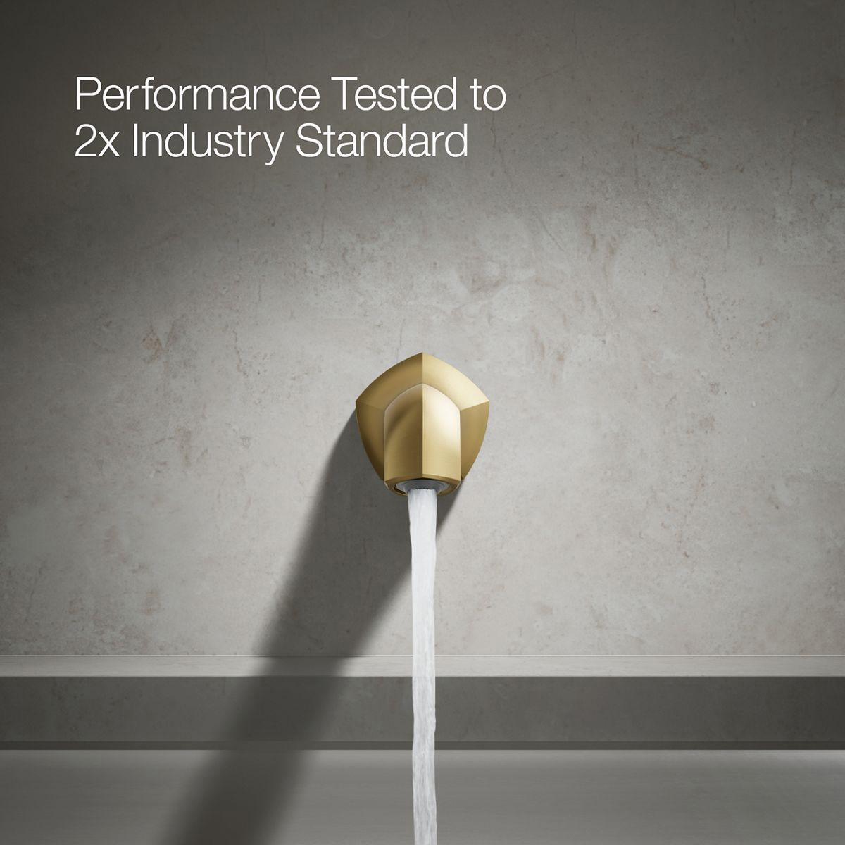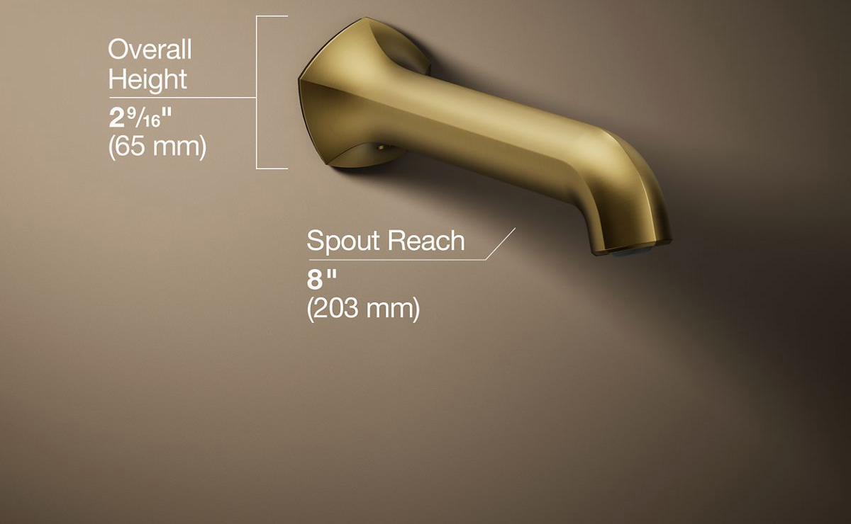 Unapologetically luxurious and truly unforgettable, Occasion bathroom faucets and accessories draw inspiration from 1960s Hollywood glamour and extravagance. Fashioned after the era’s sleek dress lines and bold car designs, the Occasion collection reflects graceful elegance, blending classic midcentury and modern design. Customize your bath with the collection’s distinctive pentagonal accents, faceted bases, flowing lines, and delicate edges. Choose a spout, handles, and finish to build your own signature design. Minimalist with soft square angles, the Occasion wall-mount 8 bath spout with Straight design pairs with your choice of Occasion wall-mount bath faucet handles for a look as fashionable as it is functional.