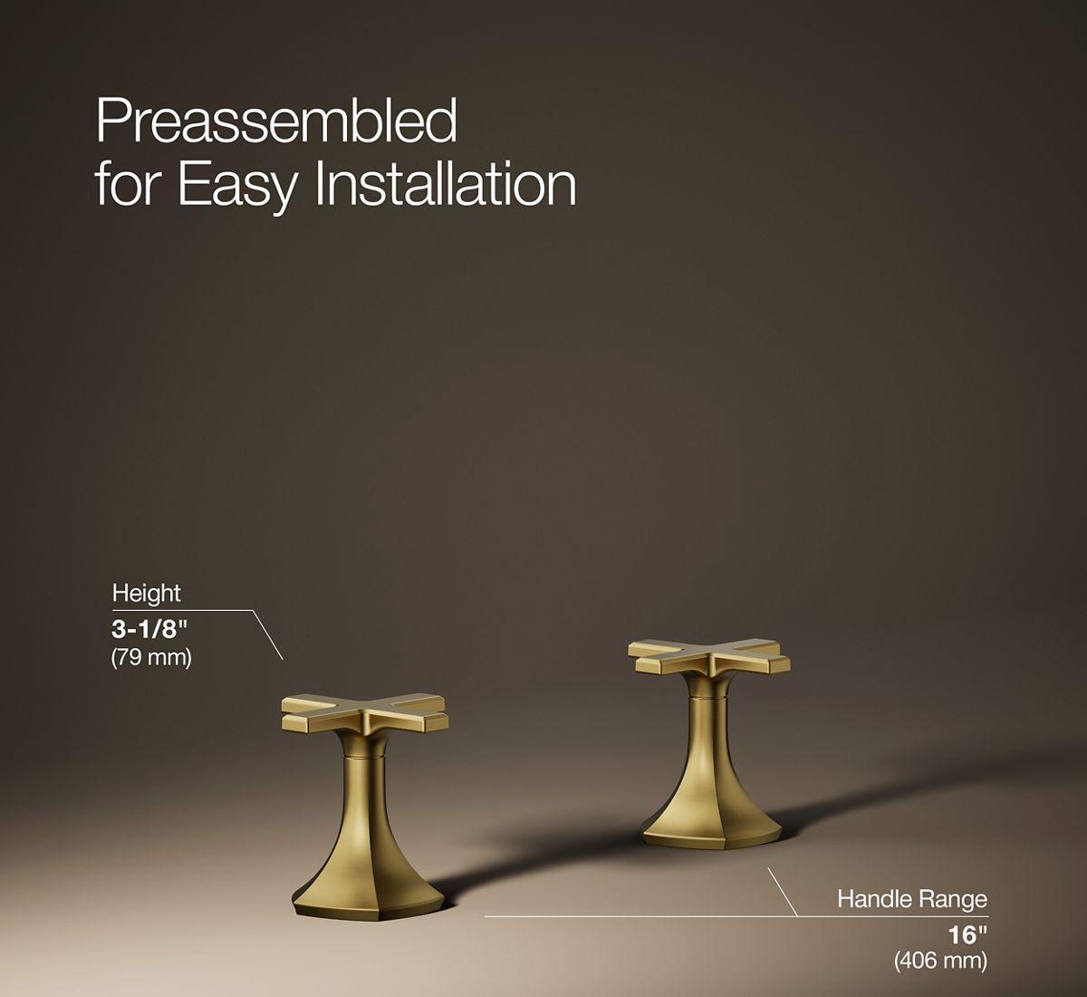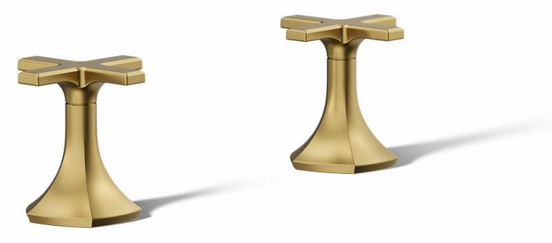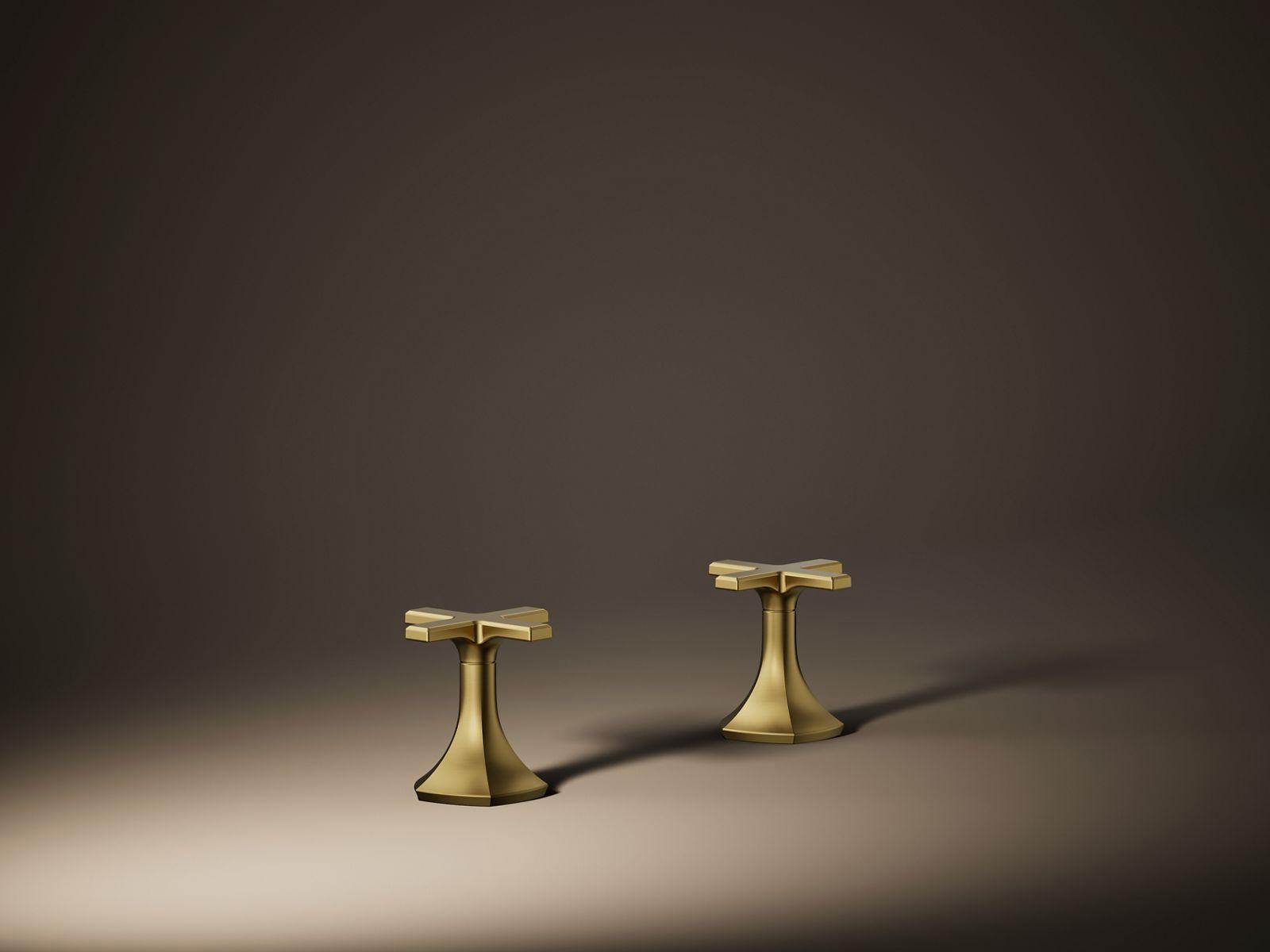Unapologetically luxurious and truly unforgettable, Occasion bathroom faucets and accessories draw inspiration from 1960s Hollywood glamour and extravagance. Fashioned after the era’s sleek dress lines and bold car designs, the Occasion collection reflects graceful elegance, blending classic midcentury and modern design. Customize your bath with the collection’s distinctive pentagonal accents, faceted bases, flowing lines, and delicate edges. Choose a spout, handles, and finish to build your own signature design. Pair these elegant, minimalist cross handles with valves with your choice of Occasion sink faucet spout for a look as fashionable as it is functional.