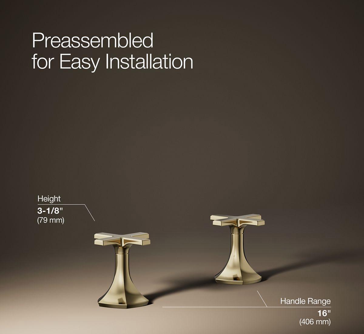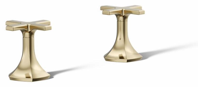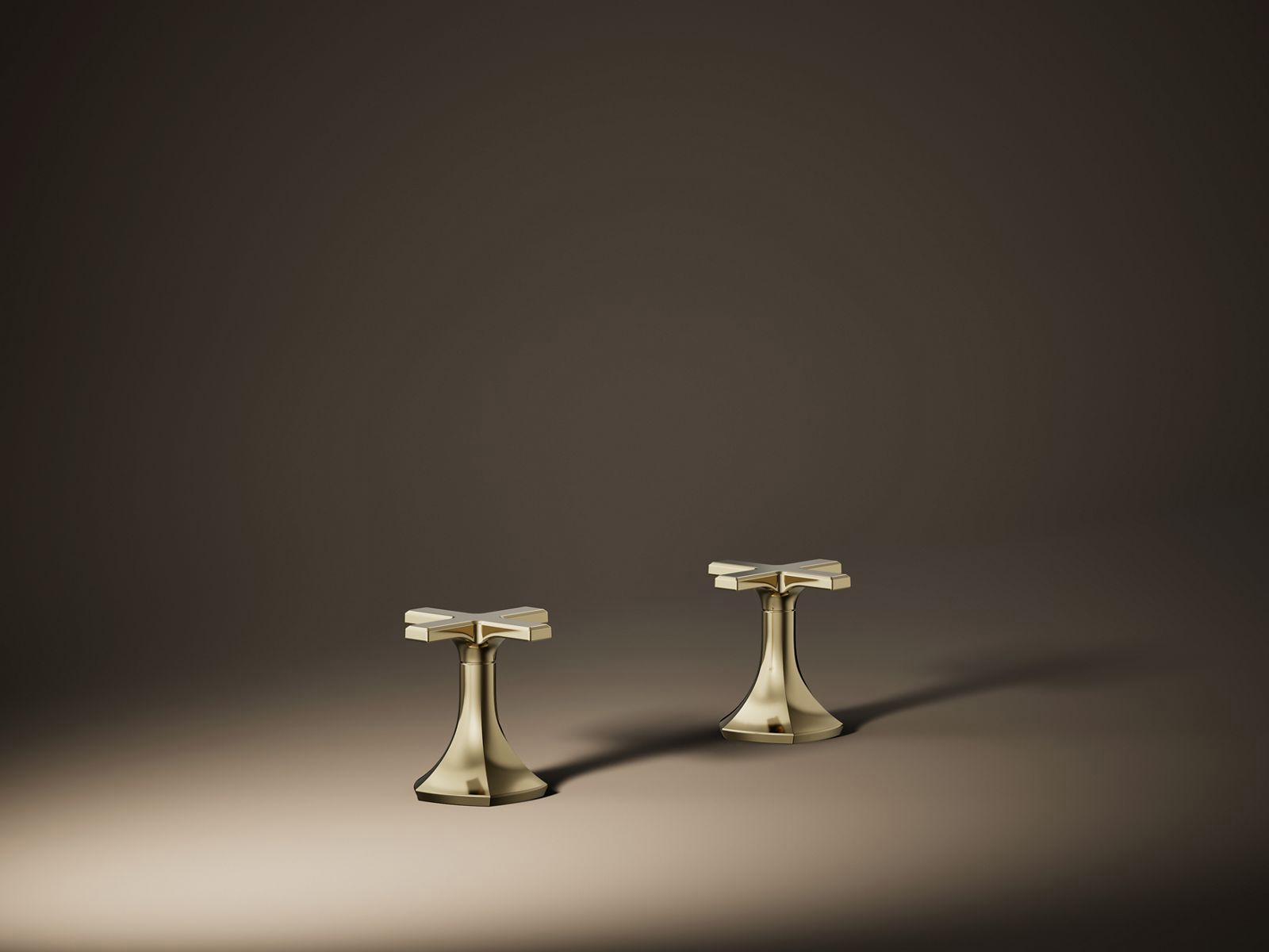 Unapologetically luxurious and truly unforgettable, Occasion bathroom faucets and accessories draw inspiration from 1960s Hollywood glamour and extravagance. Fashioned after the era’s sleek dress lines and bold car designs, the Occasion collection reflects graceful elegance, blending classic midcentury and modern design. Customize your bath with the collection’s distinctive pentagonal accents, faceted bases, flowing lines, and delicate edges. Choose a spout, handles, and finish to build your own signature design. Pair these elegant, minimalist cross handles with valves with your choice of Occasion sink faucet spout for a look as fashionable as it is functional.