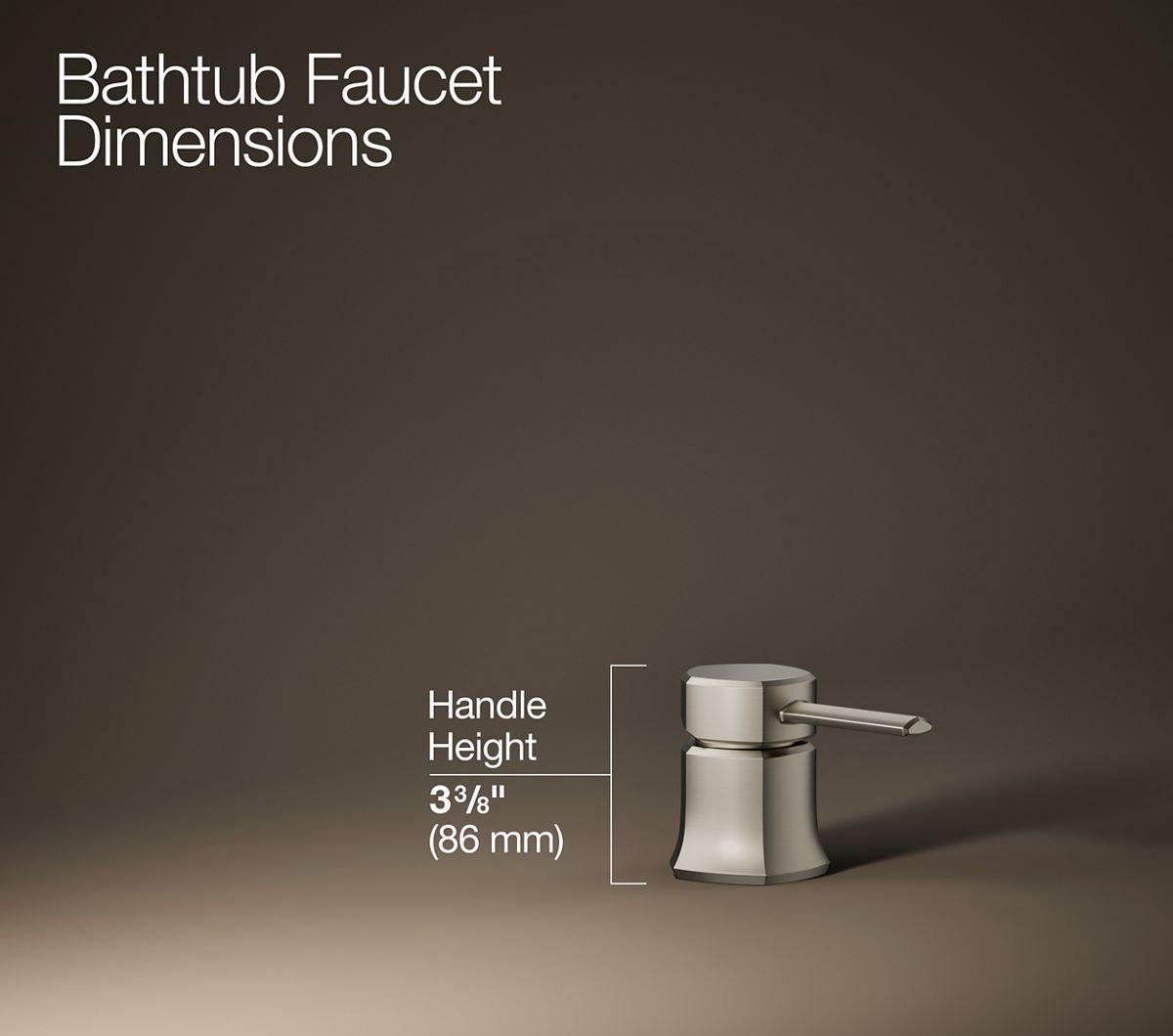 Unapologetically luxurious and truly unforgettable, Occasion bathroom faucets and accessories draw inspiration from 1960s Hollywood glamour and extravagance. Fashioned after the era’s sleek dress lines and bold car designs, the Occasion collection reflects graceful elegance, blending classic midcentury and modern design. Customize your bath with the collection’s distinctive pentagonal accents, faceted bases, flowing lines, and delicate edges. Choose a spout, handles, and finish to build your own signature design. Pair this elegant, minimalist single-control bath faucet handle with your Occasion deck-mount bath faucet spout for a look as fashionable as it is functional.