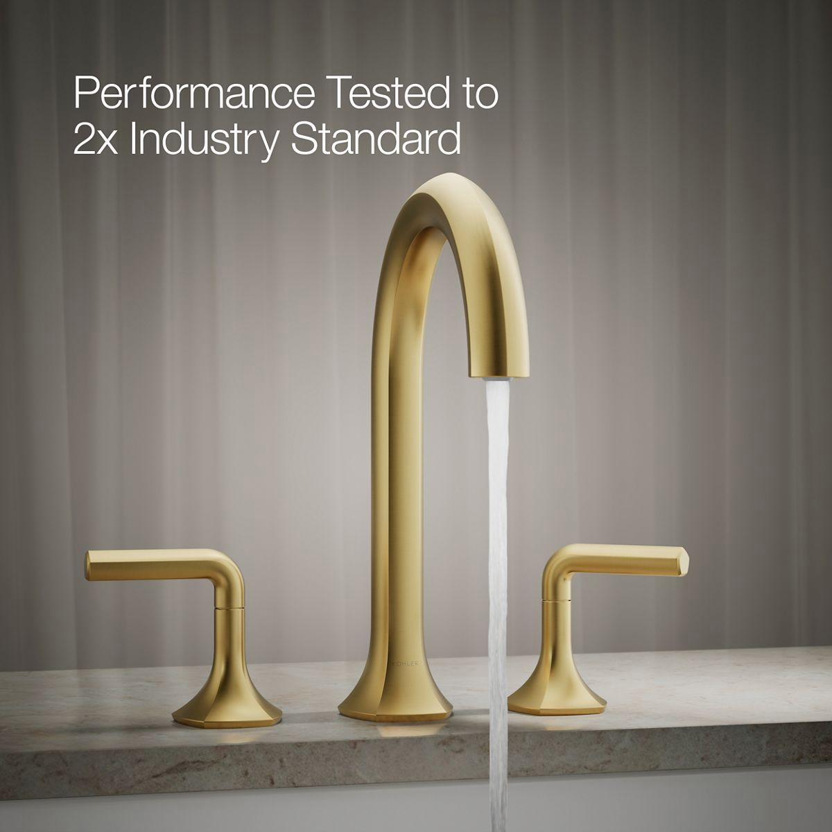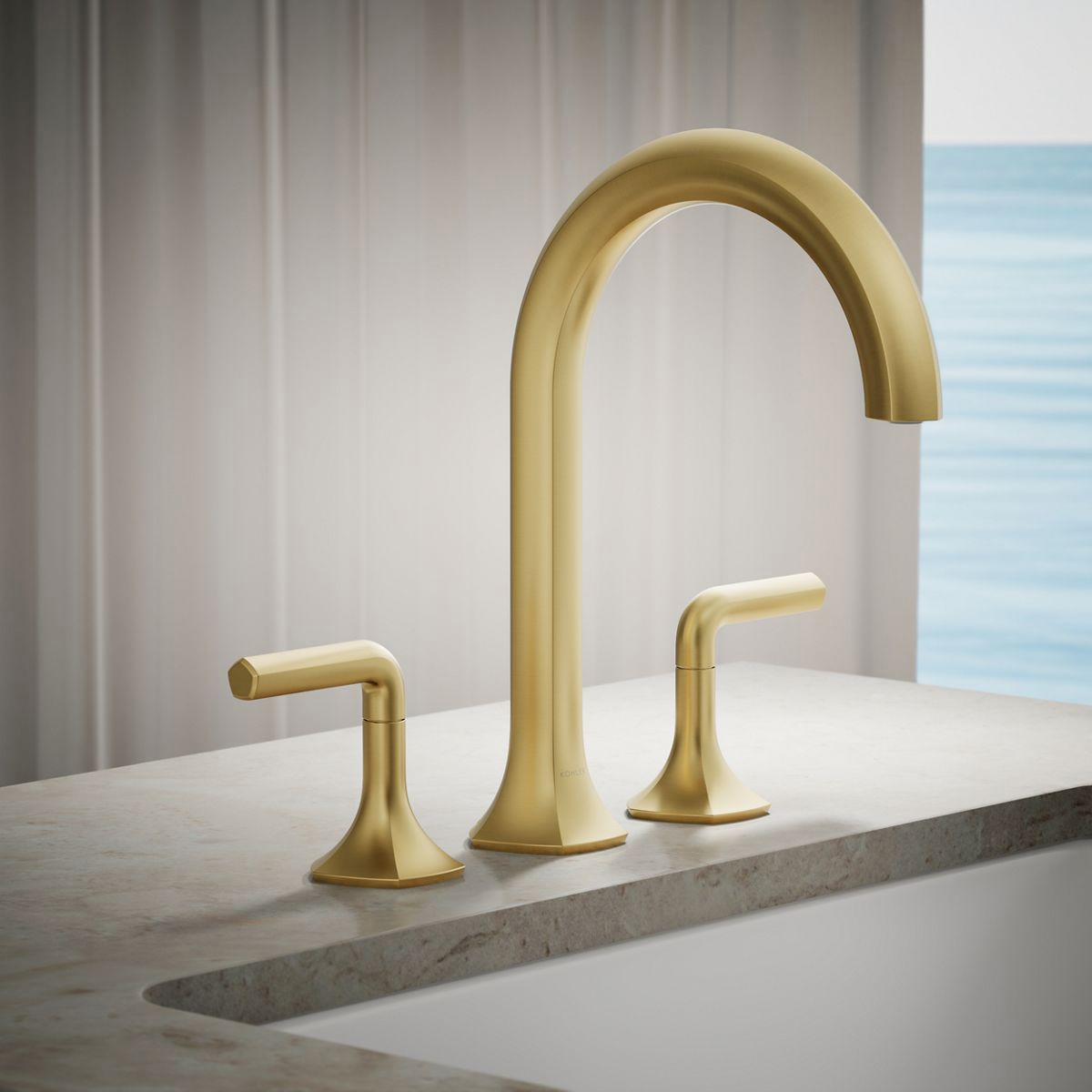 Occasion Deck Mount Tub Faucet Spout With Cane Design Less Handles - Vibrant Brushed Moderne Brass 27016-2MB Kohler