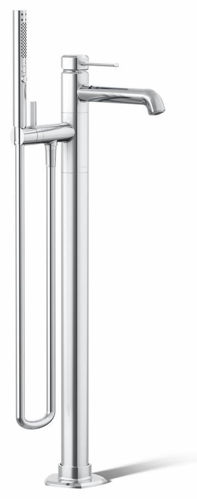 Unapologetically luxurious and truly unforgettable, Occasion bathroom faucets and accessories draw inspiration from 1960s Hollywood glamour and extravagance. Fashioned after the era’s sleek dress lines and bold car designs, the Occasion collection reflects graceful elegance with distinctive pentagonal accents, faceted bases, flowing lines, and delicate edges. Blending classic design with modern details, the Occasion floor-mount bath filler with Shift®+ 1.75 gpm multifunction handshower offers a freestanding bath experience as indulgent as it is fashionable. Pair with coordinating accessories to create your signature bathroom design.