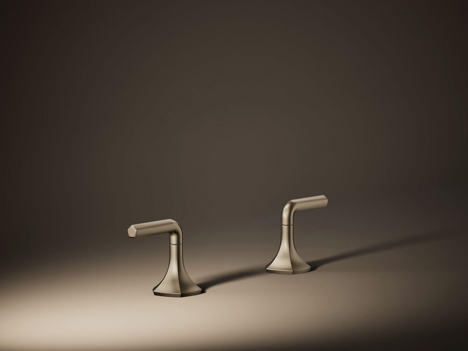 Unapologetically luxurious and truly unforgettable, Occasion bathroom faucets and accessories draw inspiration from 1960s Hollywood glamour and extravagance. Fashioned after the era’s sleek dress lines and bold car designs, the Occasion collection reflects graceful elegance, blending classic midcentury and modern design. Customize your bath with the collection’s distinctive pentagonal accents, faceted bases, flowing lines, and delicate edges. Choose a spout, handles, and finish to build your own signature design. Pair these elegant, minimalist lever handles with valves with your choice of Occasion sink faucet spout for a look as fashionable as it is functional.