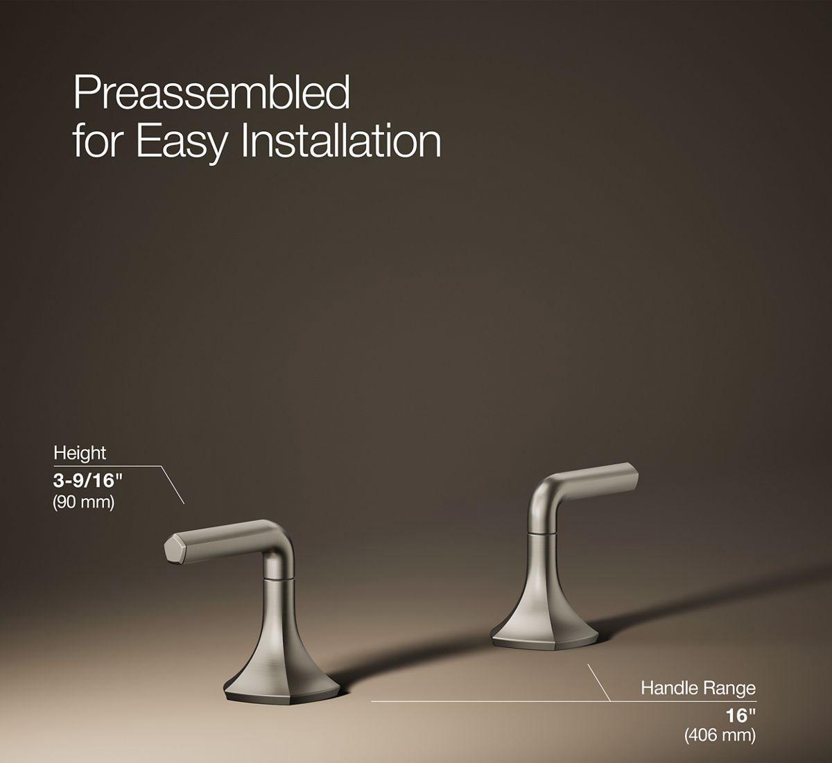 Unapologetically luxurious and truly unforgettable, Occasion bathroom faucets and accessories draw inspiration from 1960s Hollywood glamour and extravagance. Fashioned after the era’s sleek dress lines and bold car designs, the Occasion collection reflects graceful elegance, blending classic midcentury and modern design. Customize your bath with the collection’s distinctive pentagonal accents, faceted bases, flowing lines, and delicate edges. Choose a spout, handles, and finish to build your own signature design. Pair these elegant, minimalist lever handles with valves with your choice of Occasion sink faucet spout for a look as fashionable as it is functional.